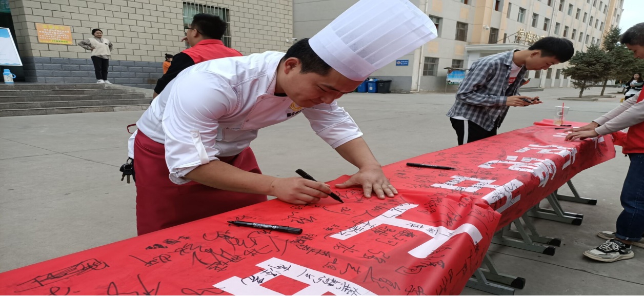 為了大力加強廣大師生節(jié)約糧食和光盤行動的意識,培養(yǎng)健康文明的就餐習(xí)慣。2020年9月16日武威職業(yè)學(xué)院機械制造系在學(xué)校食堂門口舉行了以“節(jié)約糧食?儉以養(yǎng)德”為主題的簽名活動。