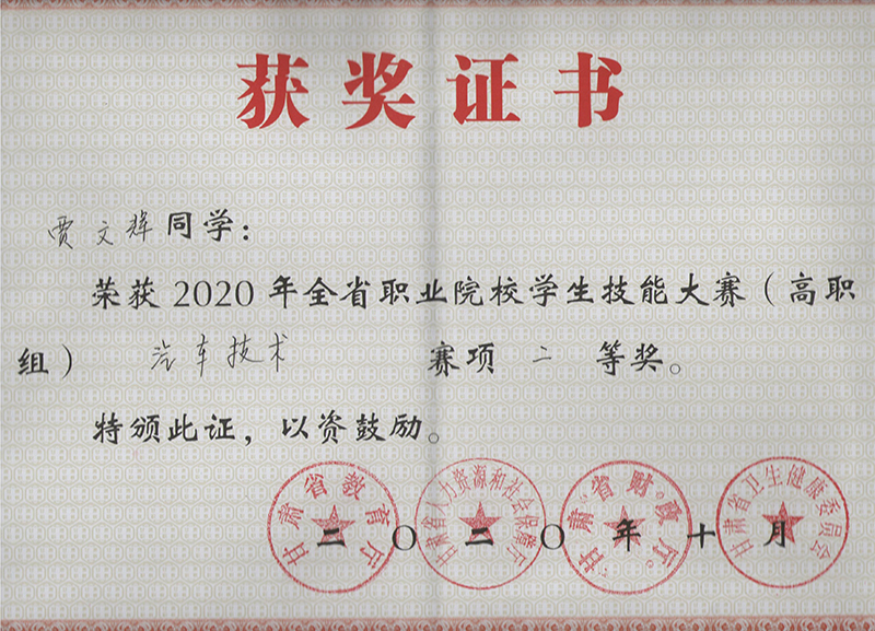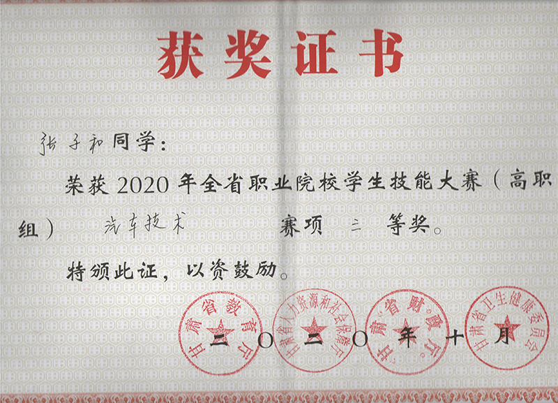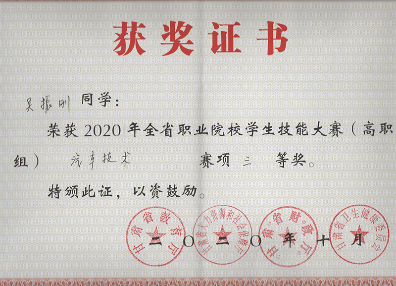 汽車工程系學生在2020年甘肅省職業(yè)院校學生技能大賽汽車技術賽項中獲獎