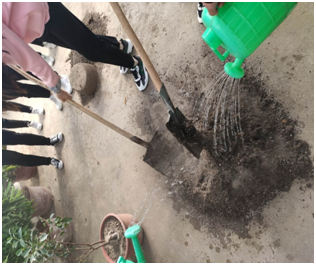 種植體驗活動前,為了讓學生更好地了解種植知識,張老師給同學們講解了植物種植的條件、如何根據(jù)季節(jié)選擇種植的種類,以及育苗、澆水、施肥、防蟲過程中的注意事項。在活動中,學生與老師合作完成種菜任務(wù),一起探討種植經(jīng)驗、勞動技能。