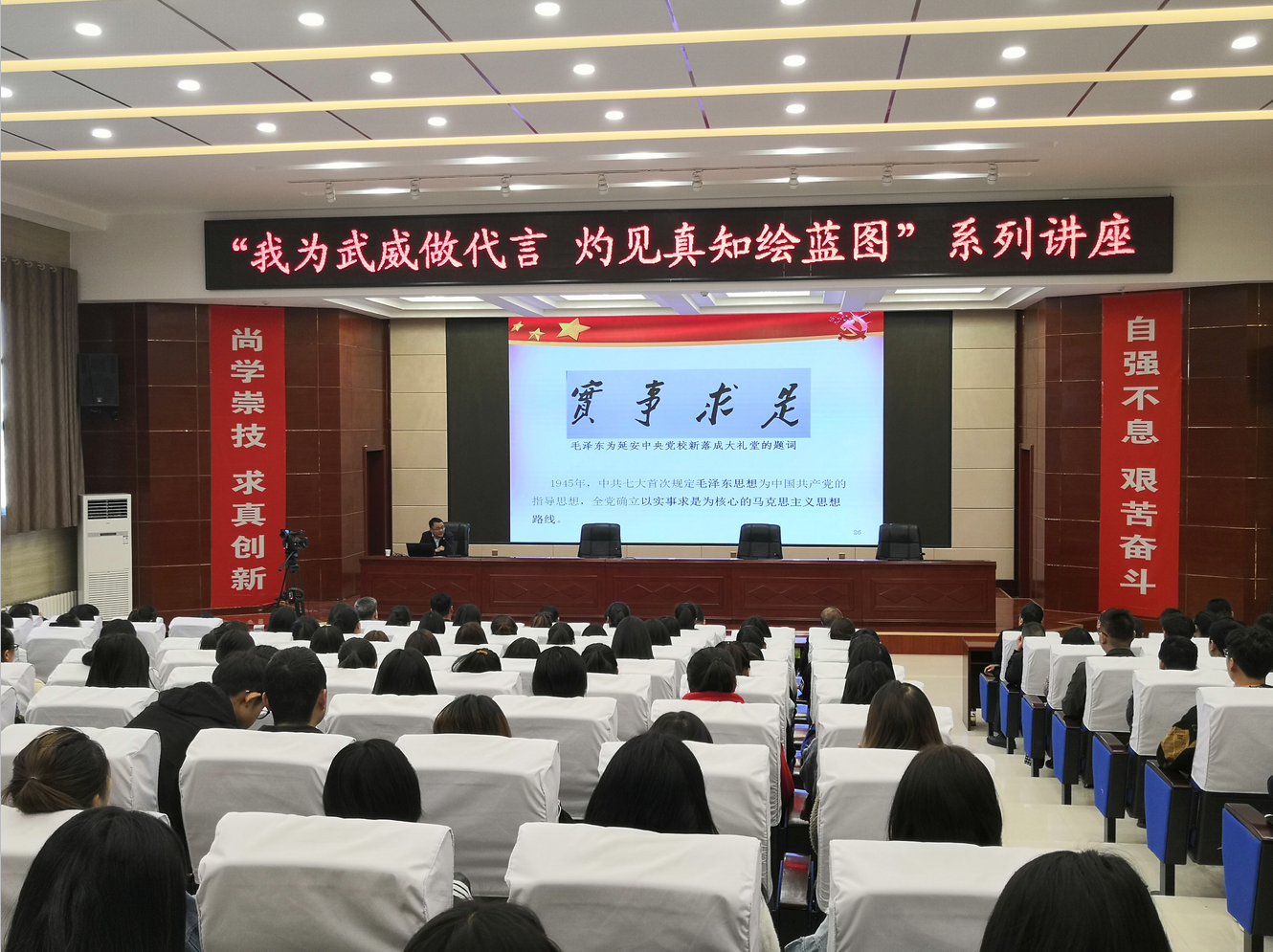 3月16日,武威職業(yè)學(xué)院“綠洲講壇”第12期在學(xué)院菁英廳舉行,本期活動邀請到中國社科院哲學(xué)研究所副研究員、民勤縣委副書記周丹作主題為《掌握看家本領(lǐng) 堅(jiān)定理想信念》的報告。學(xué)院領(lǐng)導(dǎo)班子、中層干部、師生代表220余人參加了報告會。