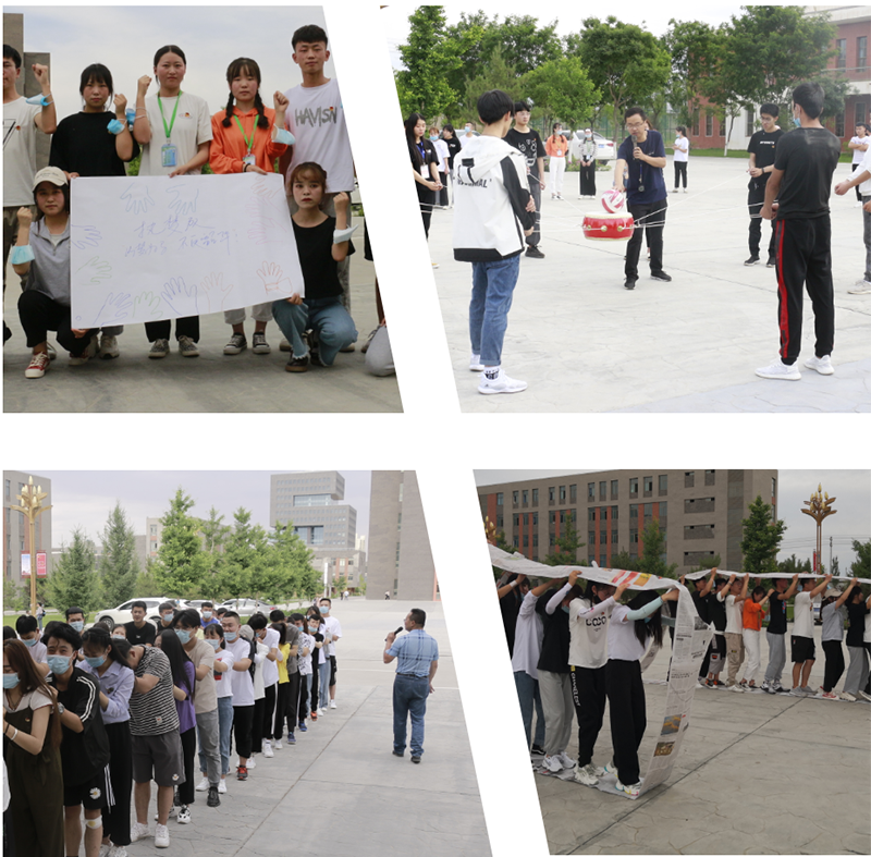 6月19日、6月20日下午在大學生活動中心前廣場開展“釋放壓力、放飛心靈”素質拓展活動?;顒影ㄆ票?、團隊建設、風火輪大PK、同心協(xié)力創(chuàng)輝煌(鼓動人心)、分享五個環(huán)節(jié)。