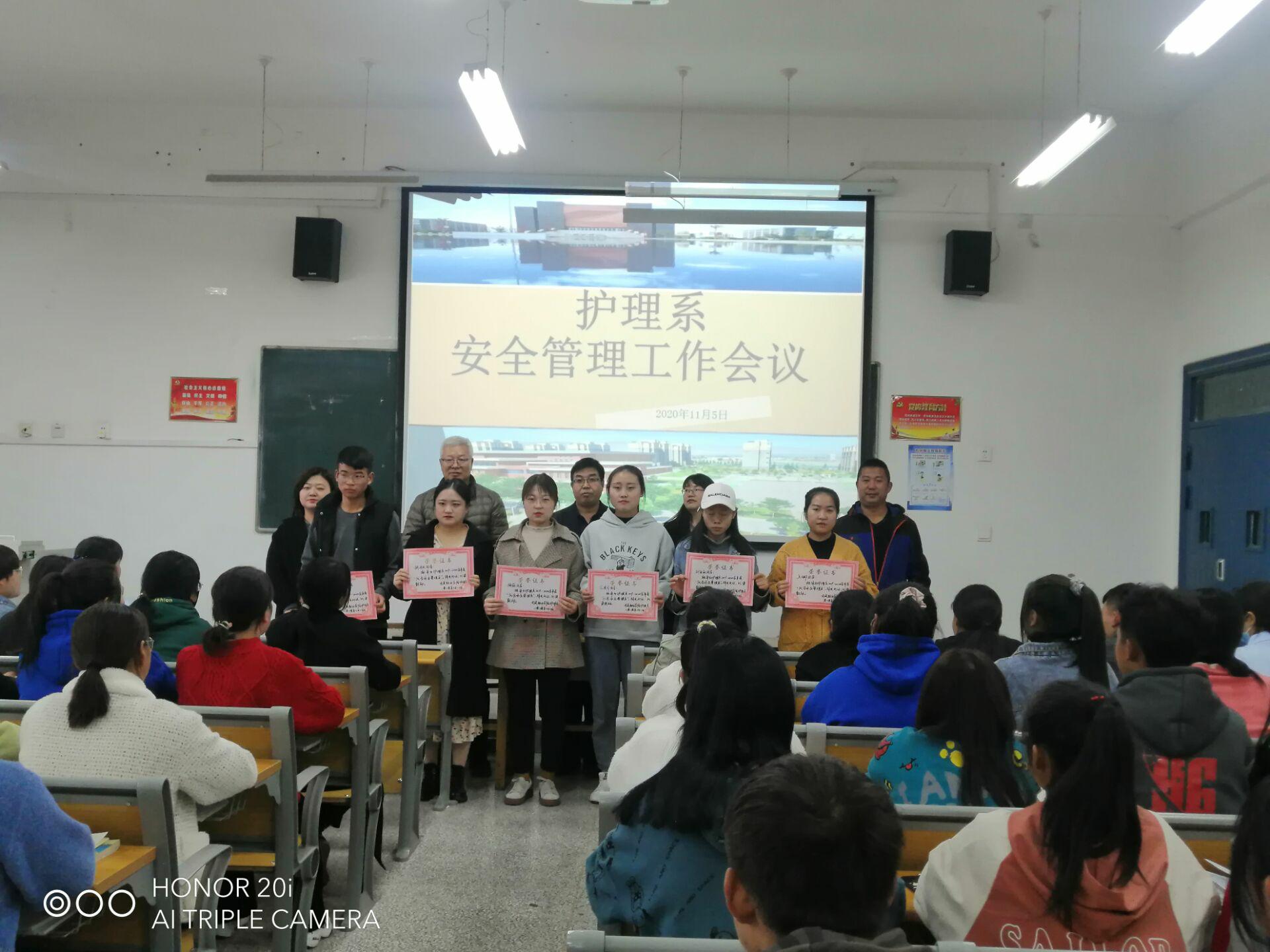 會上,陳鳳平宣讀了《護理系關于表彰2019-2020學年度學生優(yōu)秀安全管理員的決定》,護理系書記張建輝為獲表彰學生頒發(fā)榮譽證書。張學軍就近期我系存在的安全隱患問題作了詳細的說明。張建輝傳達了學院召開的疫情常態(tài)化防控工作會議內(nèi)容及相關文件精神,他指出,全系要進一步加強安全隱患排查,尤其是實驗室安全,切實將安全各項工作措施落到實處,預防安全事故的發(fā)生。他強調(diào),全系師生要進一步加強學生身體健康監(jiān)測,尤其是每天的晨午檢、日報告、零報告,切實將疫情防控各項工作措施落到實處;倡導文明就餐,增強節(jié)約意識,實施“光盤行動”,杜絕浪費發(fā)生; 持續(xù)做好宿舍、教室及環(huán)境衛(wèi)生掃除,營造良好的學習、生活和工作環(huán)境;安全是所有工作的基礎與保障,全體安全員要齊心協(xié)力、攜手努力,除隱患、防火險、保安全、促和諧,為建設美好校園戮力奮進。