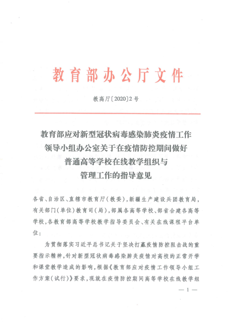 教育部做好普通高等學(xué)校在線(xiàn)教學(xué)組織與管理工作的指導(dǎo)意見(jiàn)