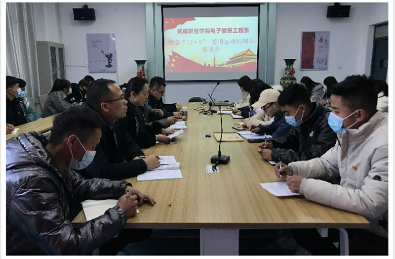 12月9日,各系進(jìn)行了紀(jì)念“12.9”愛國運(yùn)動座談會,通過師生座談共議前仆后繼、不屈不撓的愛國主義精神,充分認(rèn)識“12.9”愛國運(yùn)動的歷史意義和深刻內(nèi)涵。