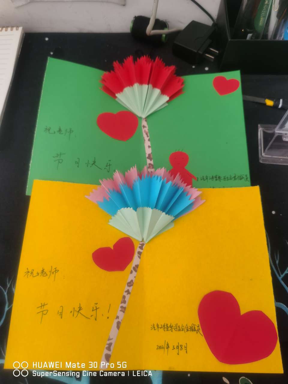 ? 3月8日上午,利用課間休息時(shí)間,汽車工程系學(xué)生通過贈(zèng)送自制小賀卡、每人一句祝福語等形式為女教師們獻(xiàn)上了節(jié)日的祝福。
