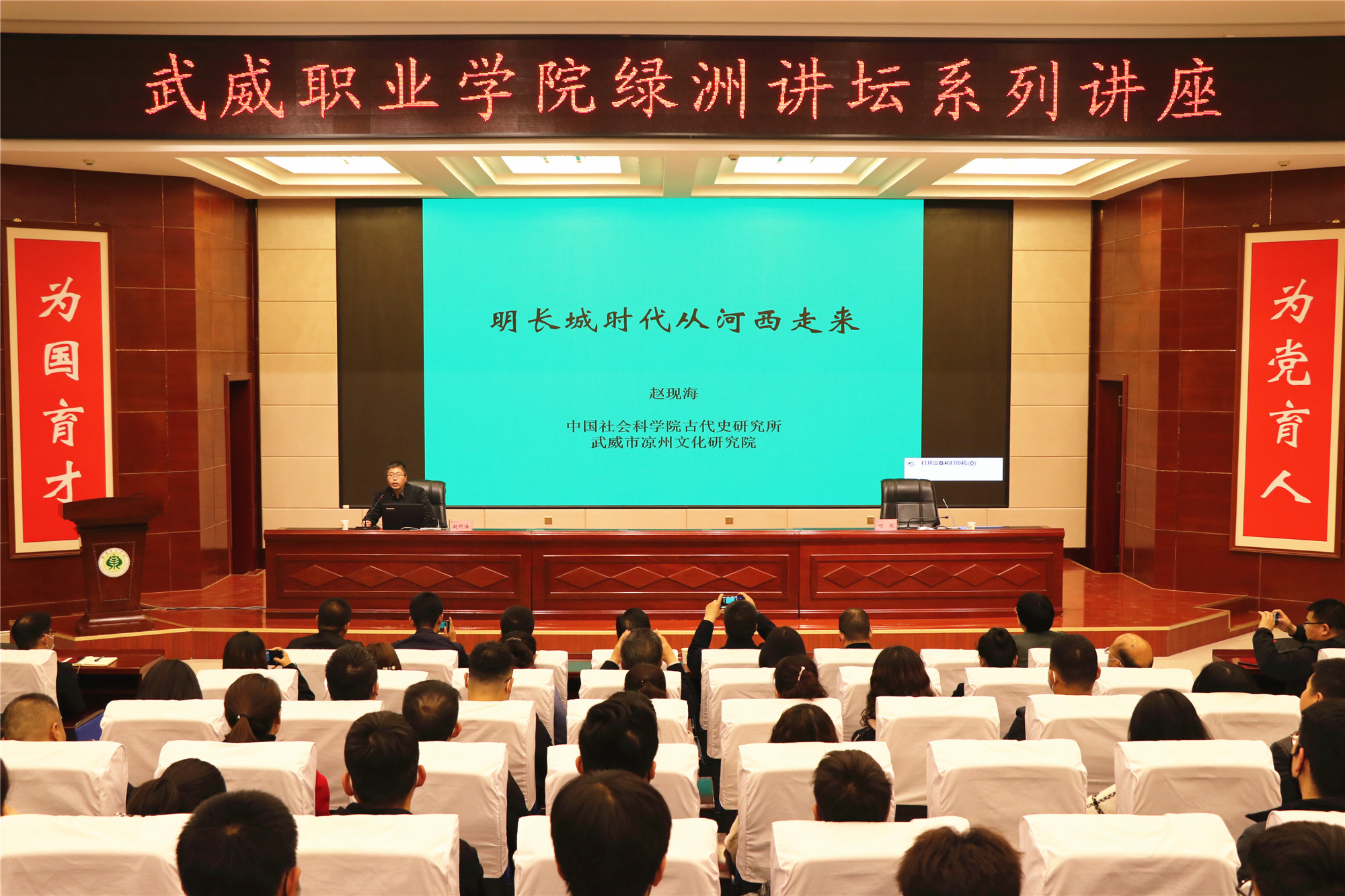 4月2日,學(xué)院綠洲講壇第40期開講,由中國社會科學(xué)院古代史研究所研究員,明史研究室主任,市涼州文化研究院副院長趙現(xiàn)海同志為師生進行《明長城時代從河西走來》的專題報告。學(xué)院領(lǐng)導(dǎo)、涼州文化研究院相關(guān)領(lǐng)導(dǎo)和工作人員,西關(guān)科技巷社區(qū)領(lǐng)導(dǎo)和學(xué)院師生代表220人參加了報告會。黨委委員、副院長何毅主持報告會。