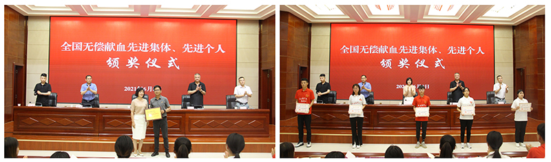 儀式上,與會領(lǐng)導為武威市2018-2019年度全國無償獻血先進集體和個人獲得者頒獎。我院被評為全國無償獻血促進獎單位獎,有13名師生榮獲全國無償獻血志愿服務(wù)獎。