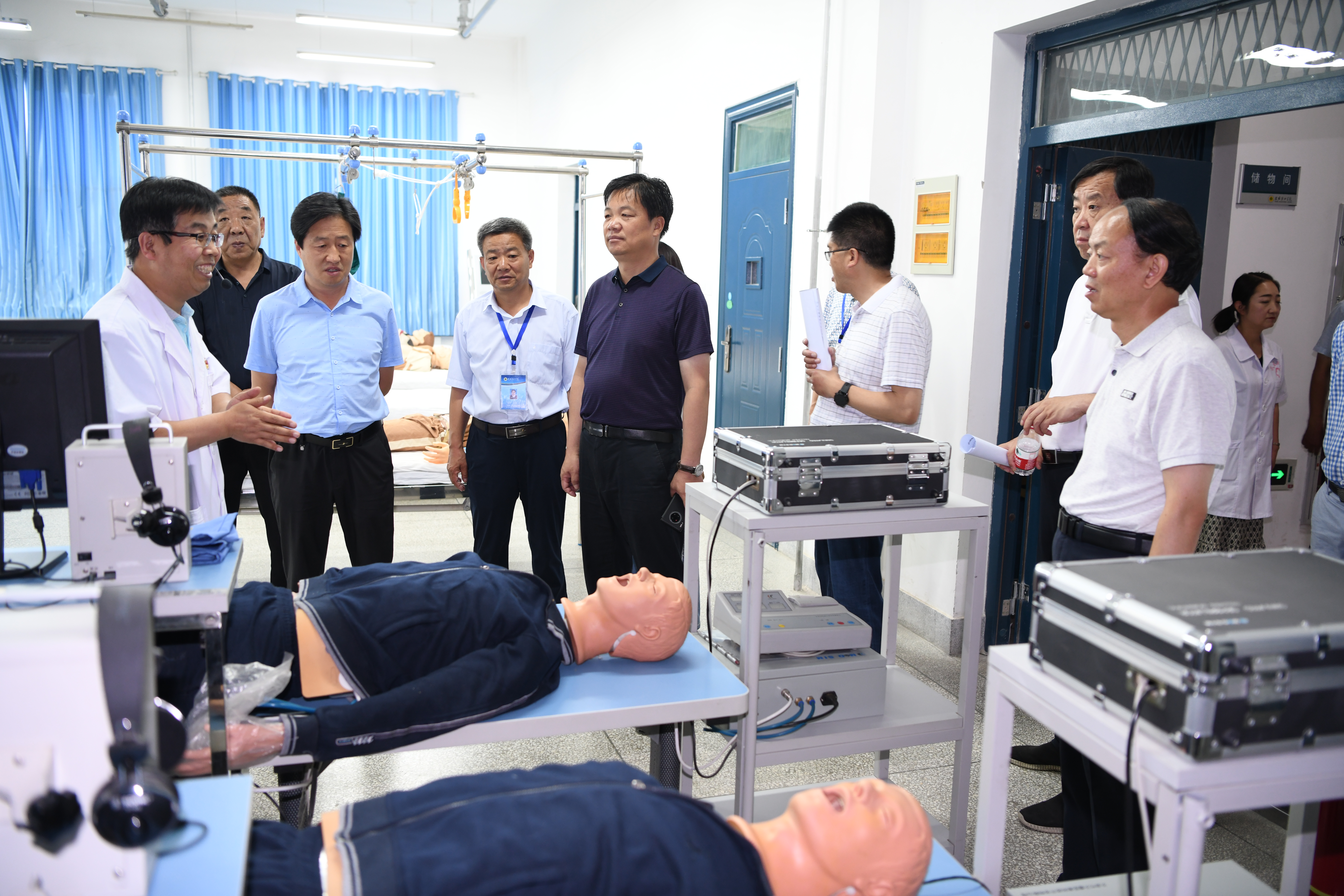 平?jīng)鍪腥舜蟪N瘯W習考察組一行先后深入學院紅色文化藝術館、能源類專業(yè)實驗實訓室、生命科技館、護理示教室、機械制造實訓車間、汽車修理實訓車間等地進行調(diào)研考察。趙明向學習考察組一行介紹了學院建設發(fā)展歷程、師資隊伍建設、招生就業(yè)、科研服務、校企合作、與中國科學院合作辦學——中科低碳新能源技術學院建設和“雙高計劃”院校建設等情況。