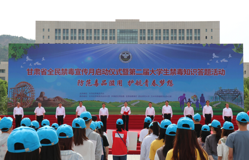 ? (6月8日上午,全省“防范毒品濫用·護(hù)航青春夢想”為主題的甘肅省全民禁毒宣傳月啟動儀式暨第二屆大學(xué)生禁毒知識答題活動啟動儀式在西北師范大學(xué)舉行。甘肅省副省長、省公安廳黨委書記、廳長余建出席儀式并講話。)