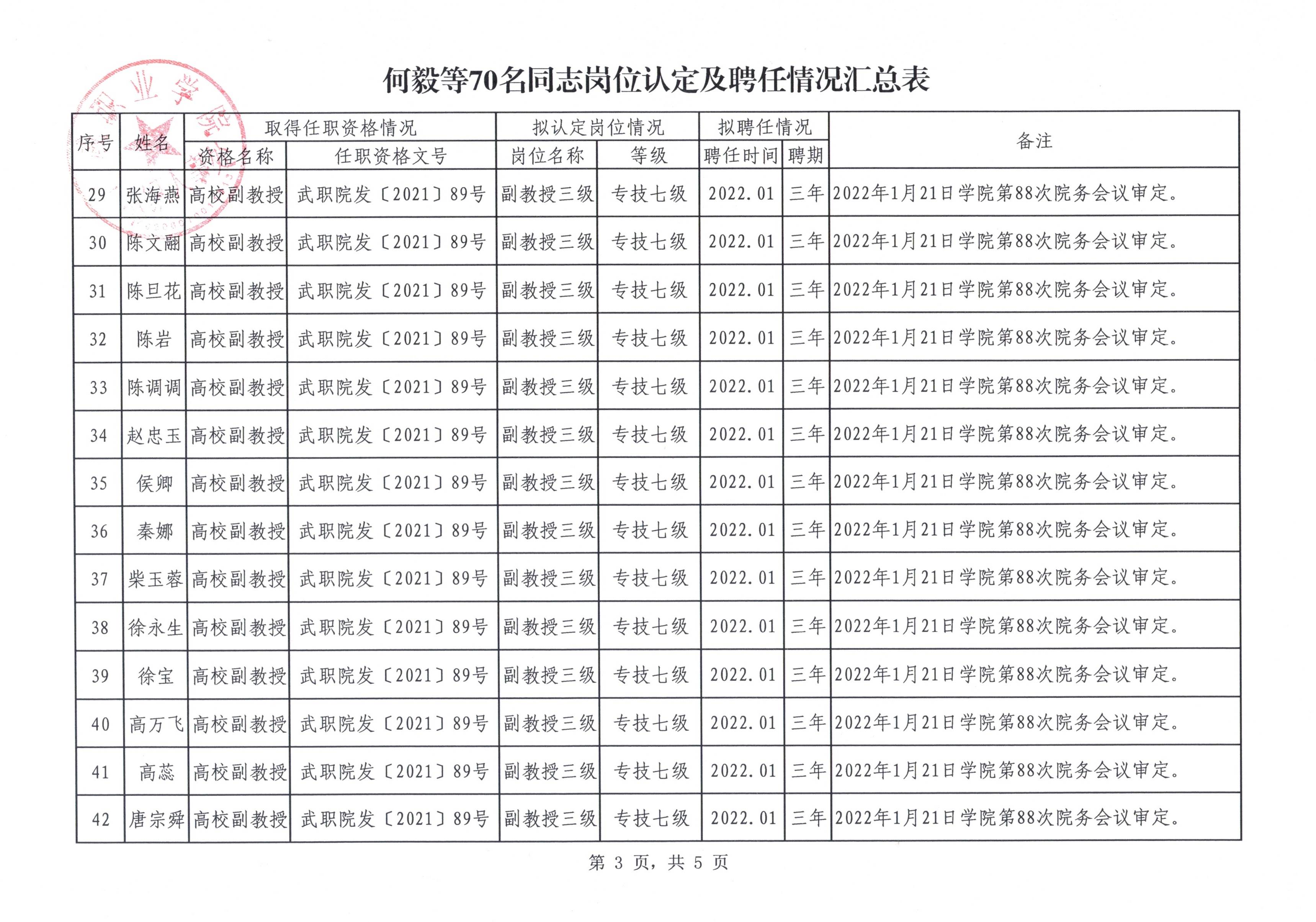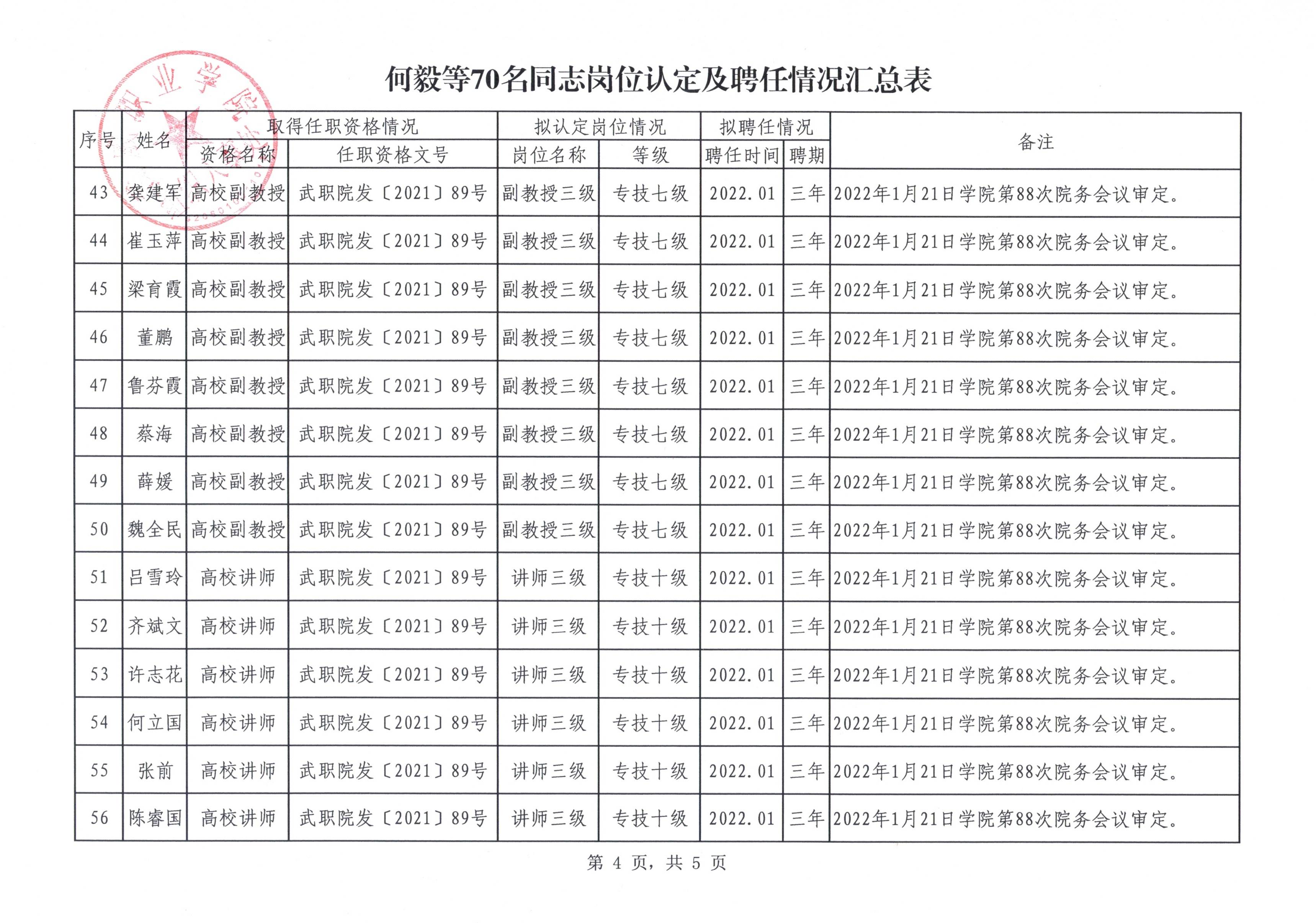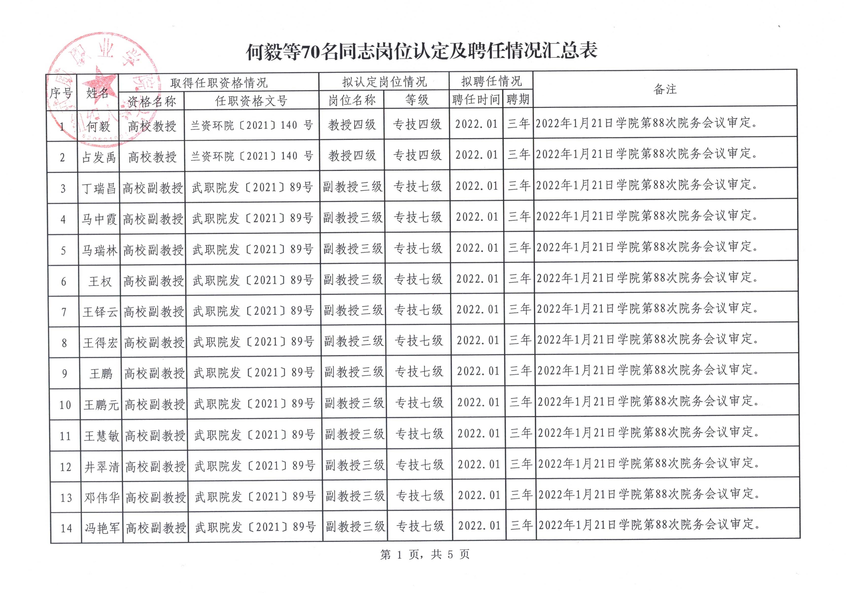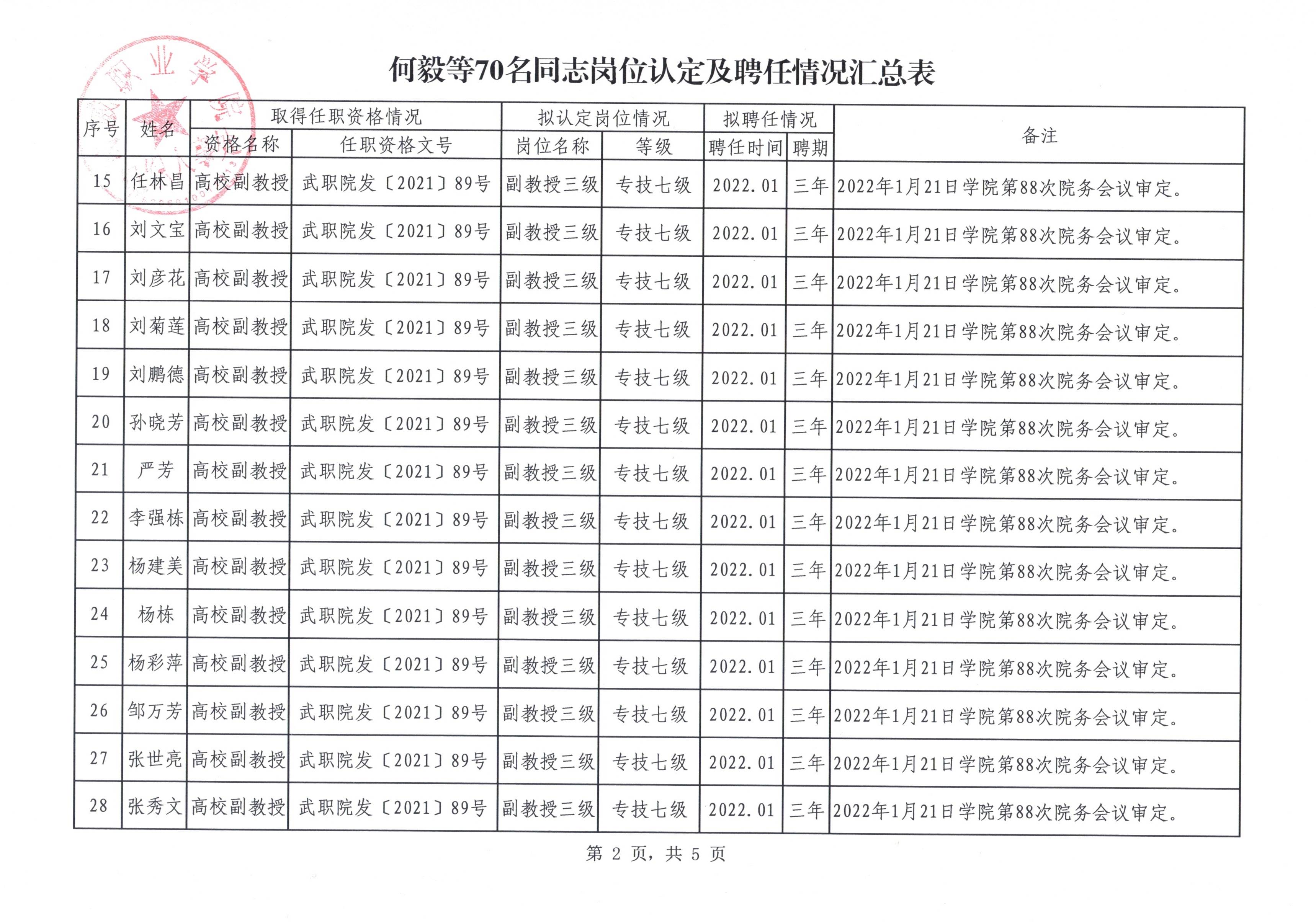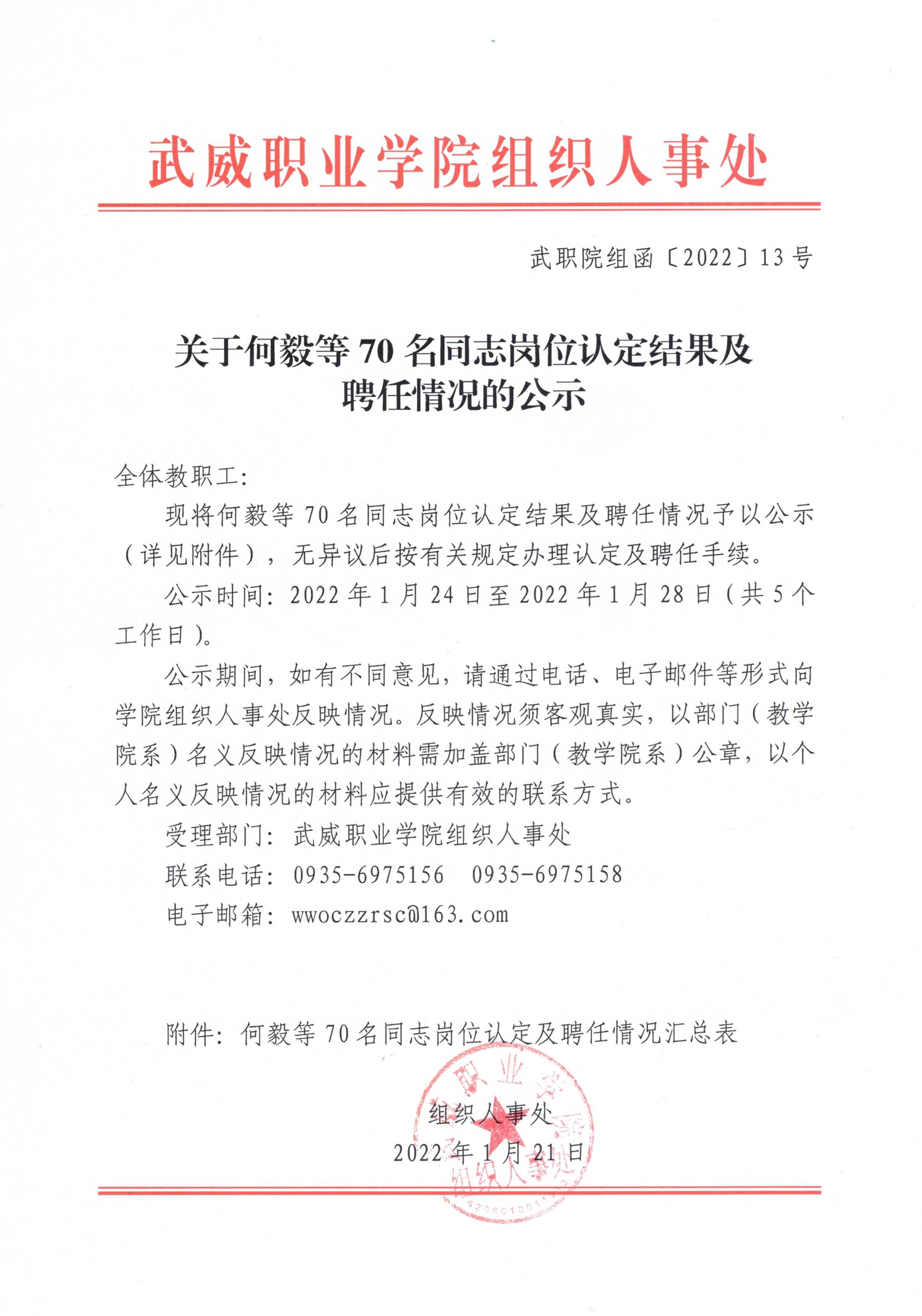 關于何毅等70名同志崗位認定結果及聘任情況的公示