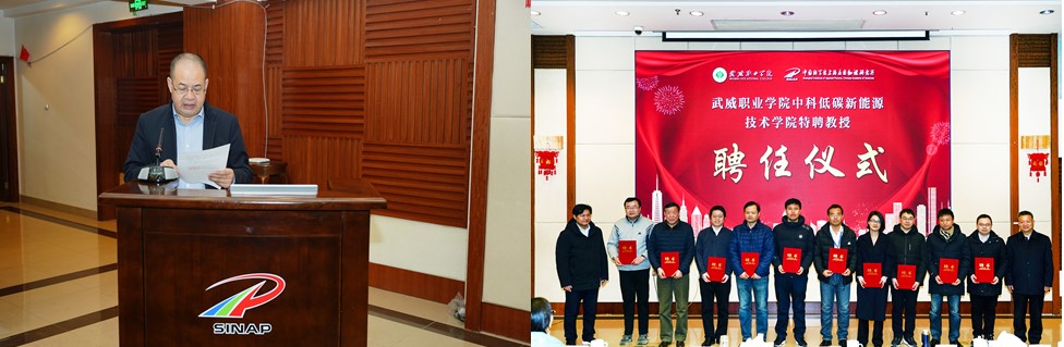 聘任儀式上,學(xué)院黨委副書記翟存祥宣讀了《武威職業(yè)學(xué)院 中國(guó)科學(xué)院上海應(yīng)用物理研究所關(guān)于續(xù)聘楊存忠等17名同志擔(dān)任中科低碳新能源技術(shù)學(xué)院特聘教授的通知》。隨后,上海應(yīng)用物理研究所所長(zhǎng)戴志敏,學(xué)院黨委書記、院長(zhǎng)趙明向17名特聘教授頒發(fā)了聘書。