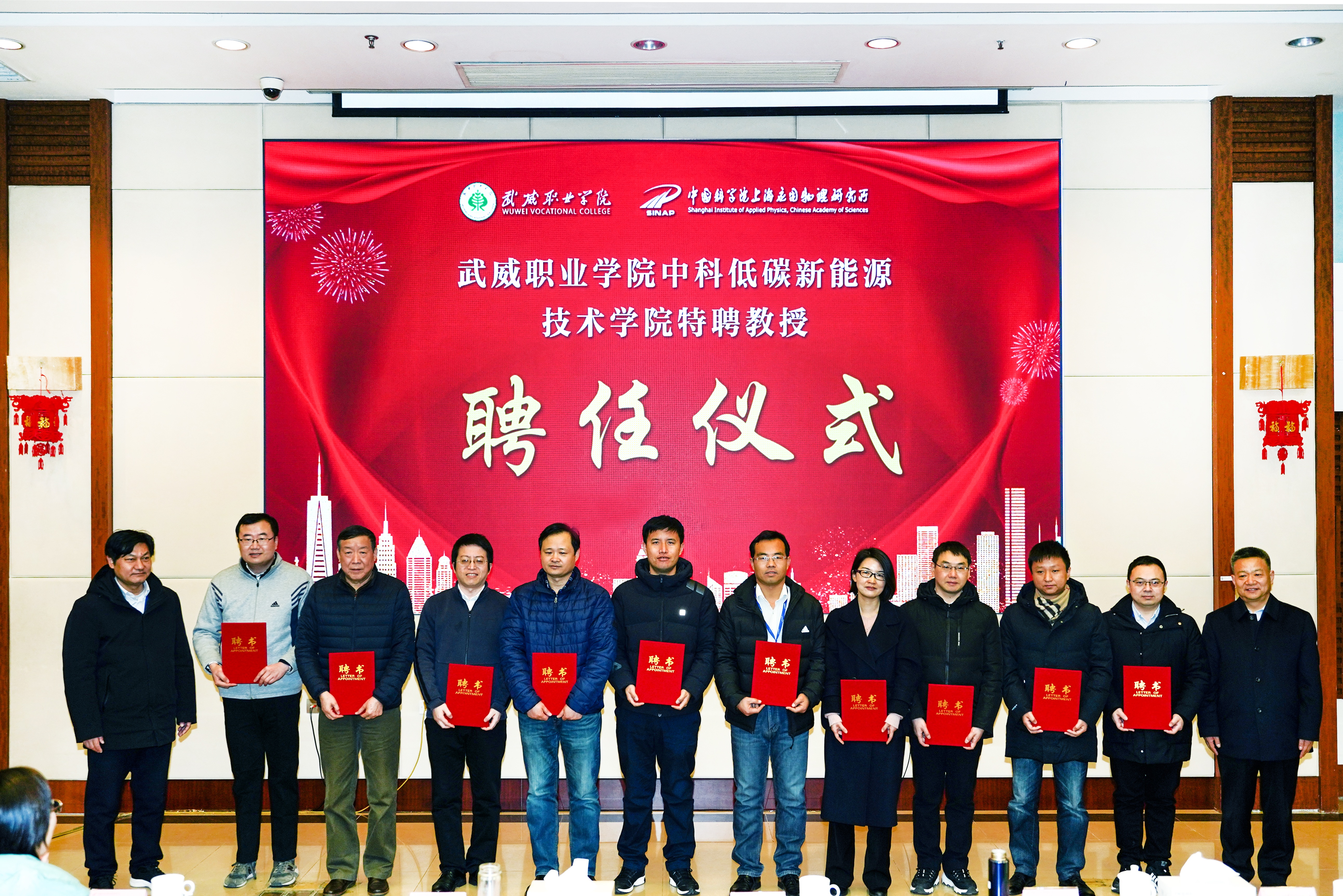 ??2月20日上午,學院領(lǐng)導前往中國科學院上海應(yīng)用物理研究所看望慰問武威職業(yè)學院中科低碳新能源技術(shù)學院特聘教授代表,并在應(yīng)物所嘉定園區(qū)舉行學院中科低碳新能源技術(shù)學院續(xù)聘特聘教授聘任儀式。上海應(yīng)用物理研究所所長戴志敏、學院黨委書記、院長趙明、黨委副書記翟存祥等出席儀式。