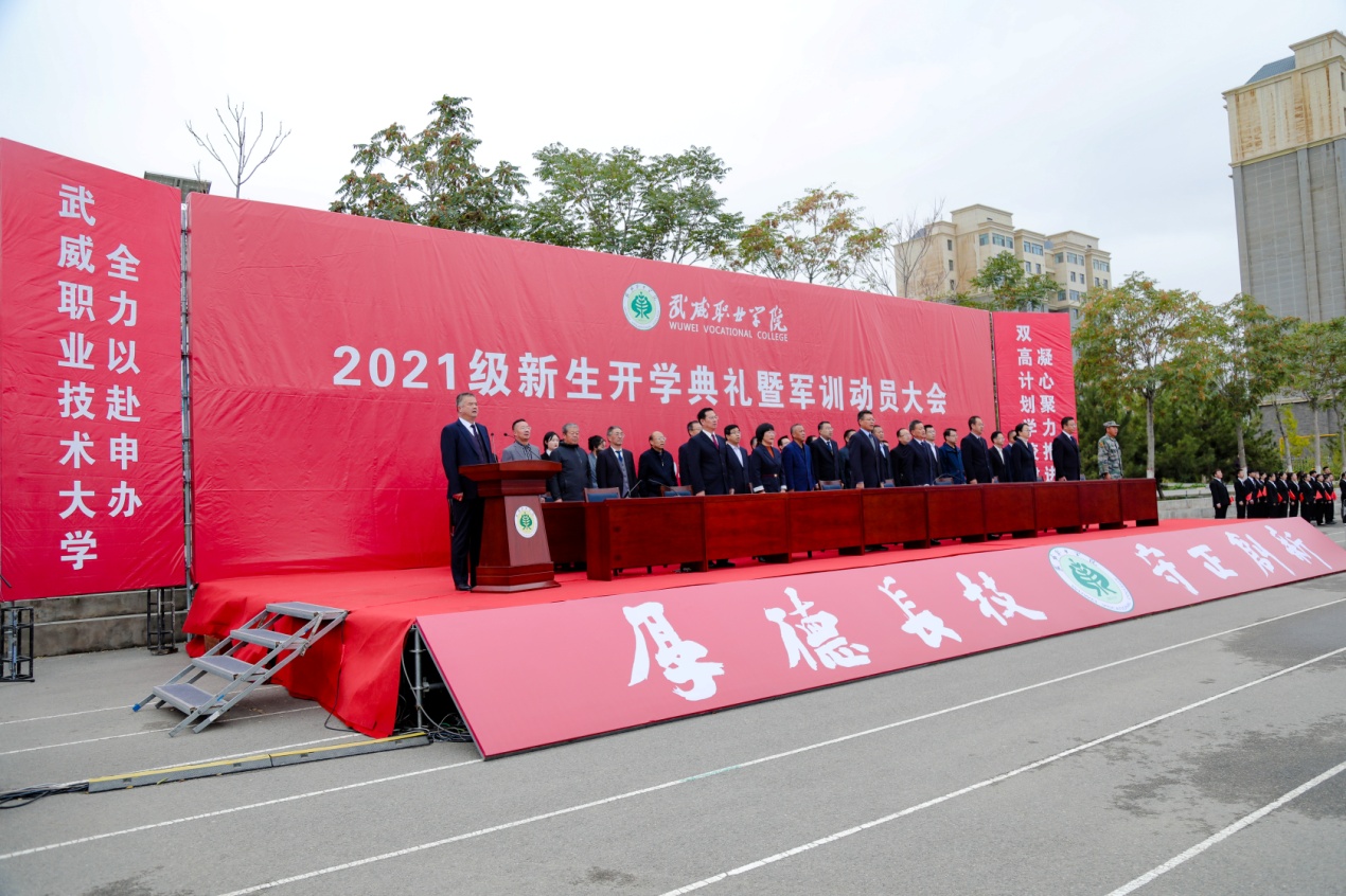 10月9日上午,學院2021級新生開學典禮暨軍訓動員大會在運動場隆重召開。黨委書記、院長趙明出席大會并講話,學院領導翟存祥、王永緒、田迎春、何毅、陳曉煜、張開禮及甘肅陽光綠洲軍訓實踐基地總教官吳鳴出席大會,各部門和教學院系負責人、輔導員及2021級全體班主任、全體新生參加大會。大會由黨委委員、副院長王守云主持。