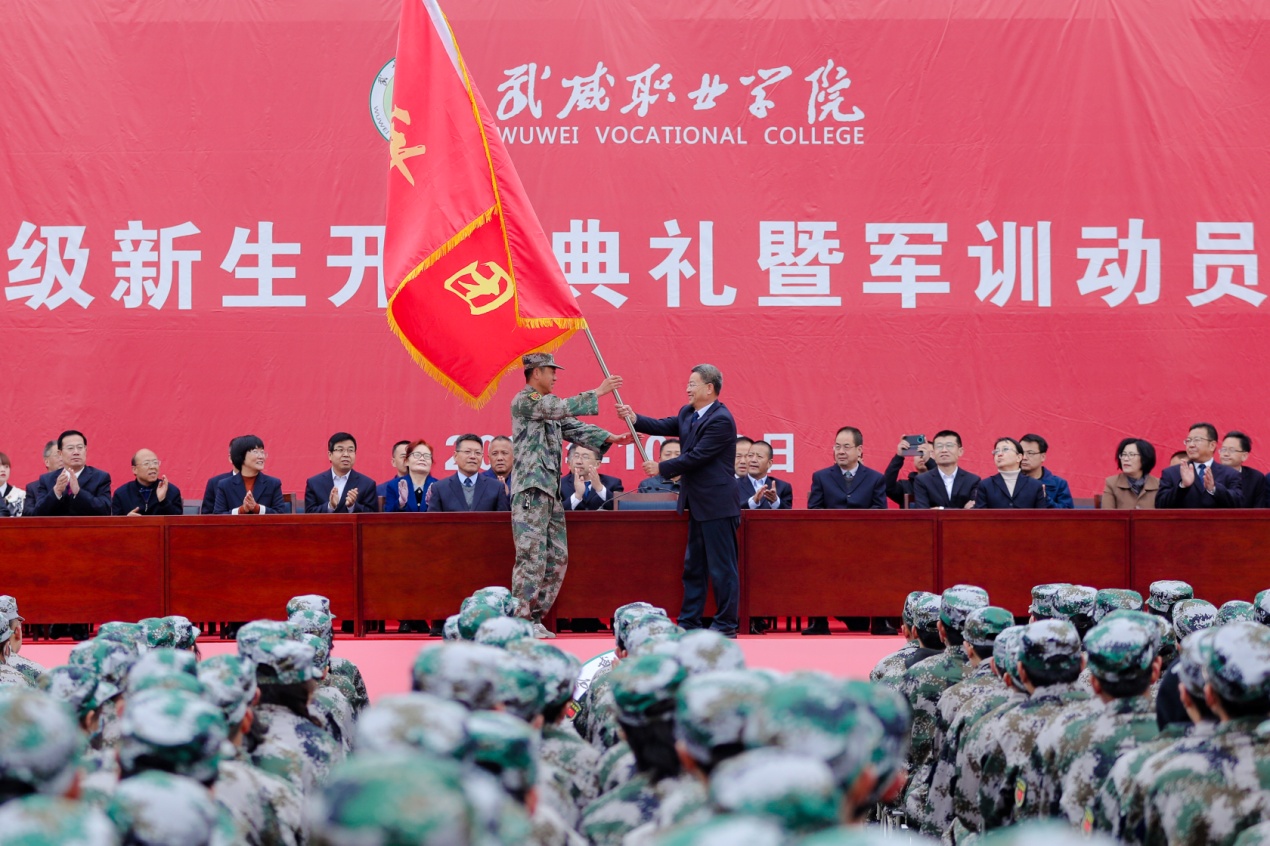 趙明在講話中,向來自省內外各地的4350余名新同學表示熱烈的歡迎,向同學們介紹了學校悠久的辦學歷史和學院過去一年取得的豐碩成果。他指出,學院正在按照建設方案有序推進甘肅省高水平高等職業(yè)學校和專業(yè)群建設,也正在按照教育部、省教育廳要求,全力以赴申辦武威職業(yè)技術大學,學院將會是廣大學子成長成才、放飛夢想的溫馨家園。