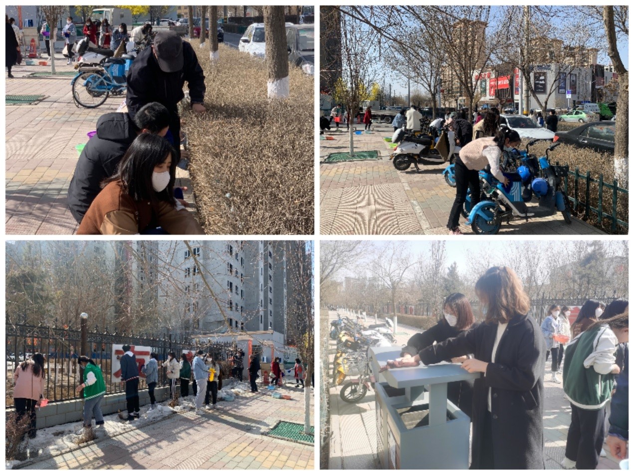 志愿者們來到學院北大門前學府路與皇臺路交叉十字至小北門道路兩側(cè),在主干道擦洗綠化帶隔離欄、校園柵欄、展示牌、垃圾箱,擺放共享單車,打掃衛(wèi)生,開展學雷鋒志愿服務主題活動。