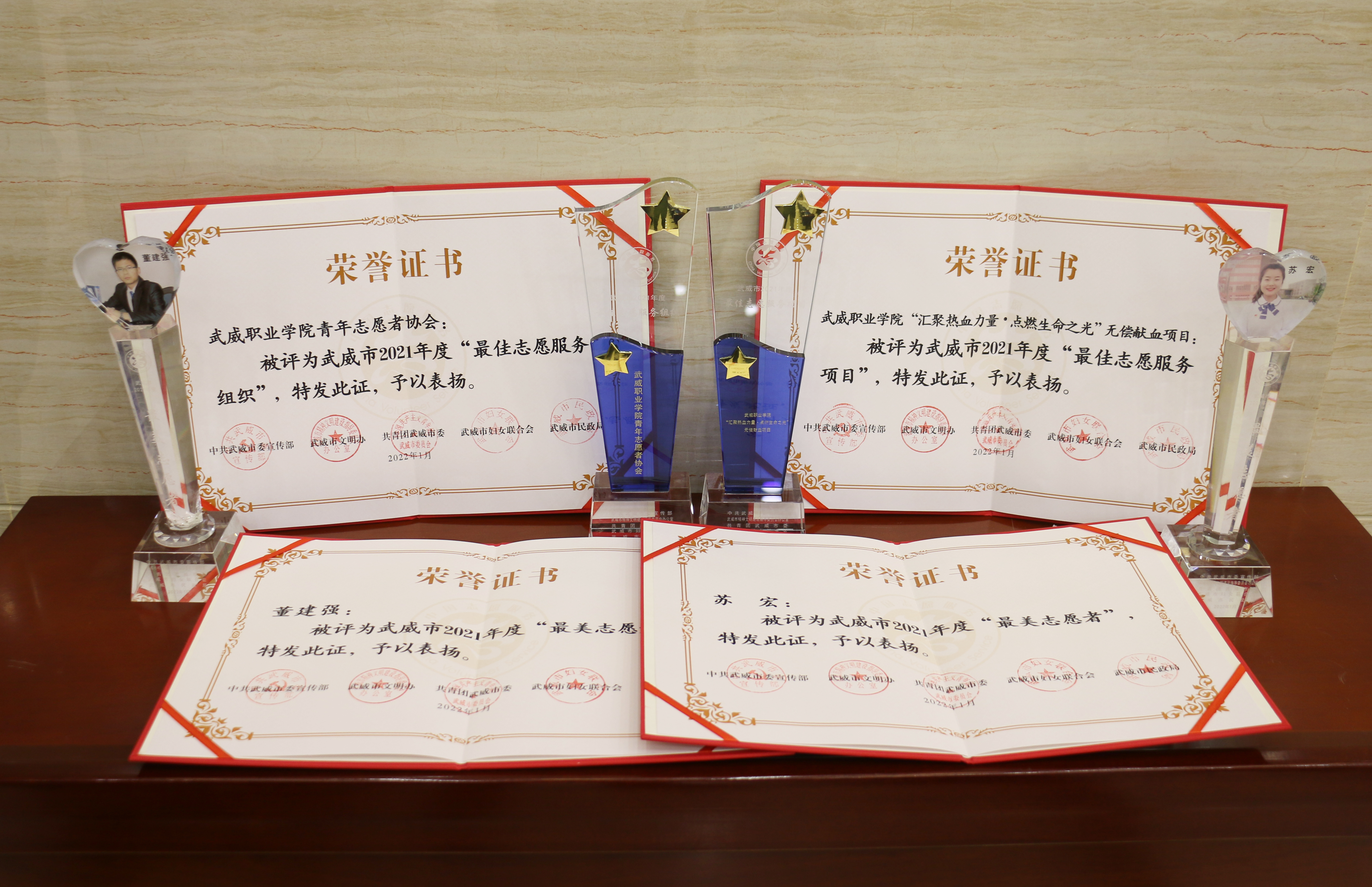 啟動(dòng)儀式上,對獲得武威市2021年度“最美志愿者”“最佳志愿服務(wù)組織”“最佳志愿服務(wù)項(xiàng)目”“最美志愿服務(wù)社區(qū)”稱號的集體和個(gè)人頒發(fā)了證書和獎(jiǎng)杯。我校青年志愿者協(xié)會獲得“最佳志愿服務(wù)組織”榮譽(yù)稱號,“匯聚熱血力量·點(diǎn)燃生命之光”無償獻(xiàn)血志愿服務(wù)項(xiàng)目獲得“最佳志愿服務(wù)項(xiàng)目”榮譽(yù)稱號,兩名師生獲得“最美志愿者”榮譽(yù)稱號。