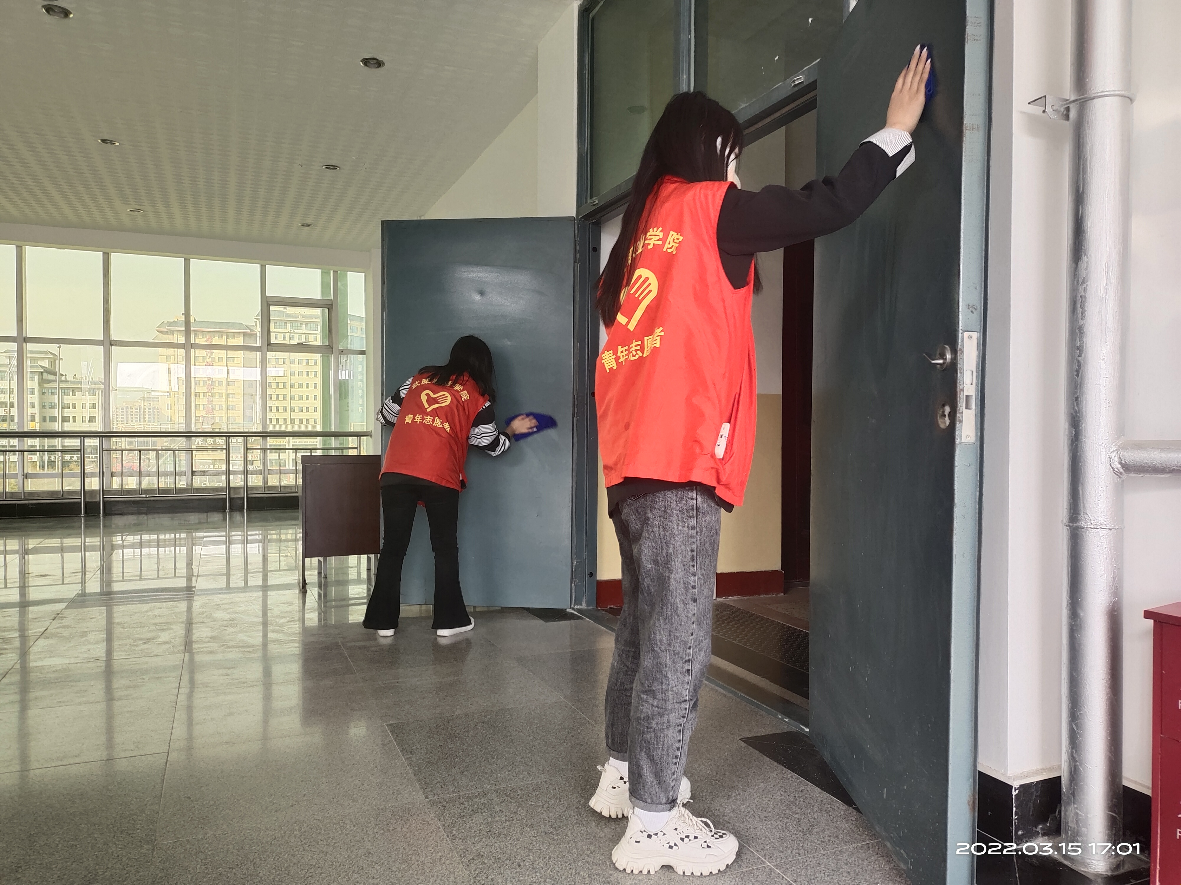 青年志愿者們不僅僅只是一個名義,他們不怕臟,不怕累,穿梭在校園各個角落,他們拿著掃帚、簸箕打掃衛(wèi)生死角,撿煙頭,還有一批在教學樓內打掃公共教室的,有的在收拾垃圾,有的在擦黑板。教學樓門口也有他們的身影,在烈日炎炎下擦拭著玻璃,他們這種勇于參與志愿者活動、不怕苦、不怕累的精神值得同學們學習。