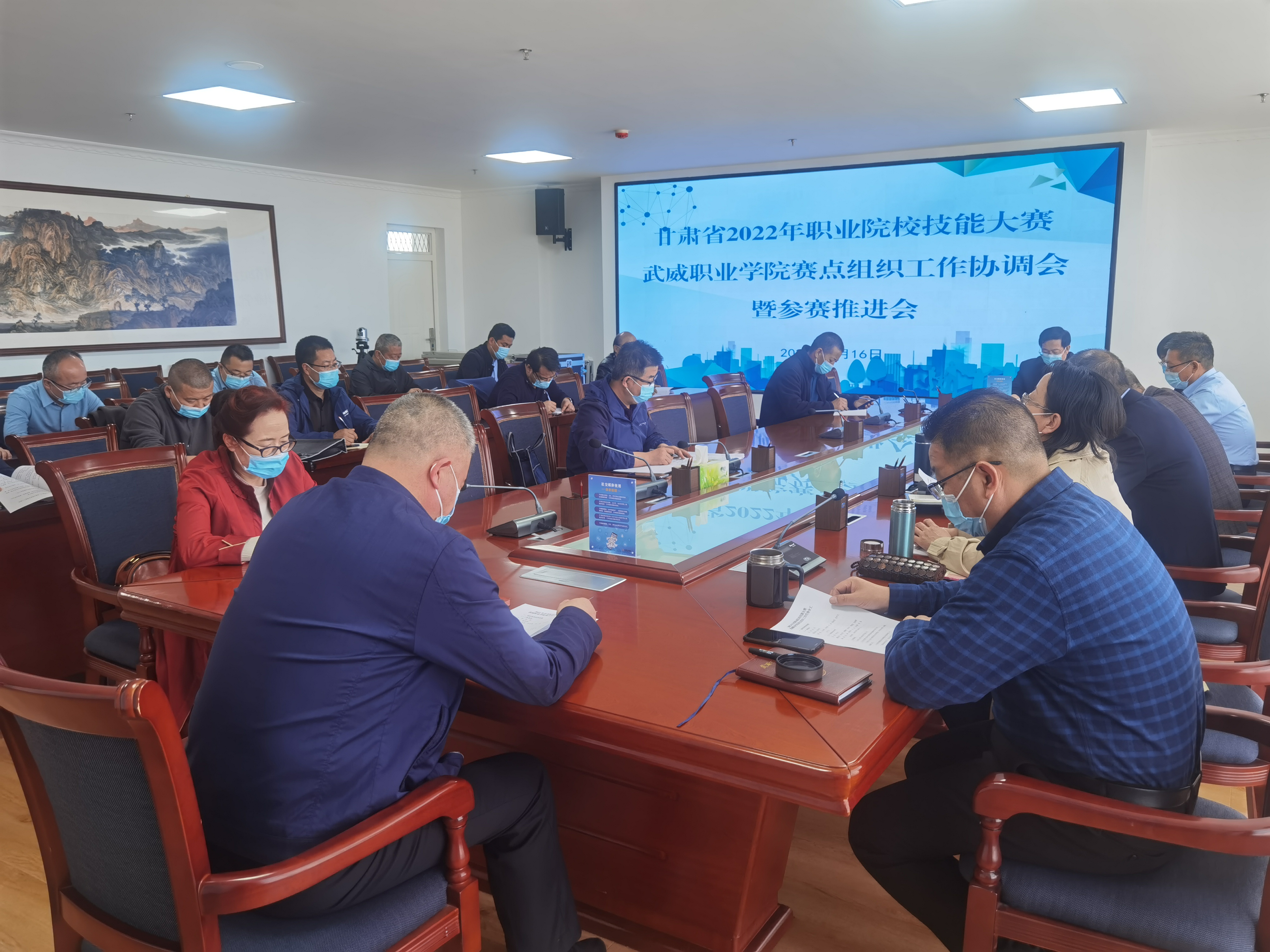 2022年甘肅省職業(yè)院校技能大賽將于4月初舉行。為深入落實學校省級“雙高”院校建設目標,推動“技能甘肅”建設,確保學校承辦賽項各項籌備工作規(guī)范有序進行,進一步提升師生備賽質(zhì)量和水平,3月16日學校在能源科技樓811會議室召開甘肅省2022年職業(yè)院校技能大賽武威職業(yè)學院賽點組織工作協(xié)調(diào)會暨參賽推進會,全面啟動2022年技能大賽籌備及備賽工作。學校領導班子成員、相關部門、二級學院負責人參加會議,學校黨委書記、校長趙明同志主持會議。