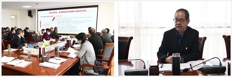 會(huì)議傳達(dá)學(xué)習(xí)了習(xí)近平總書(shū)記在學(xué)校思政課教師座談會(huì)上發(fā)表的重要講話《思政課是落實(shí)立德樹(shù)人根本任務(wù)的關(guān)鍵課程》。黨委副書(shū)記、省級(jí)思政課名師工作室負(fù)責(zé)人翟存祥圍繞學(xué)習(xí)貫徹習(xí)近平總書(shū)記講話精神作了專(zhuān)題輔導(dǎo)報(bào)告。