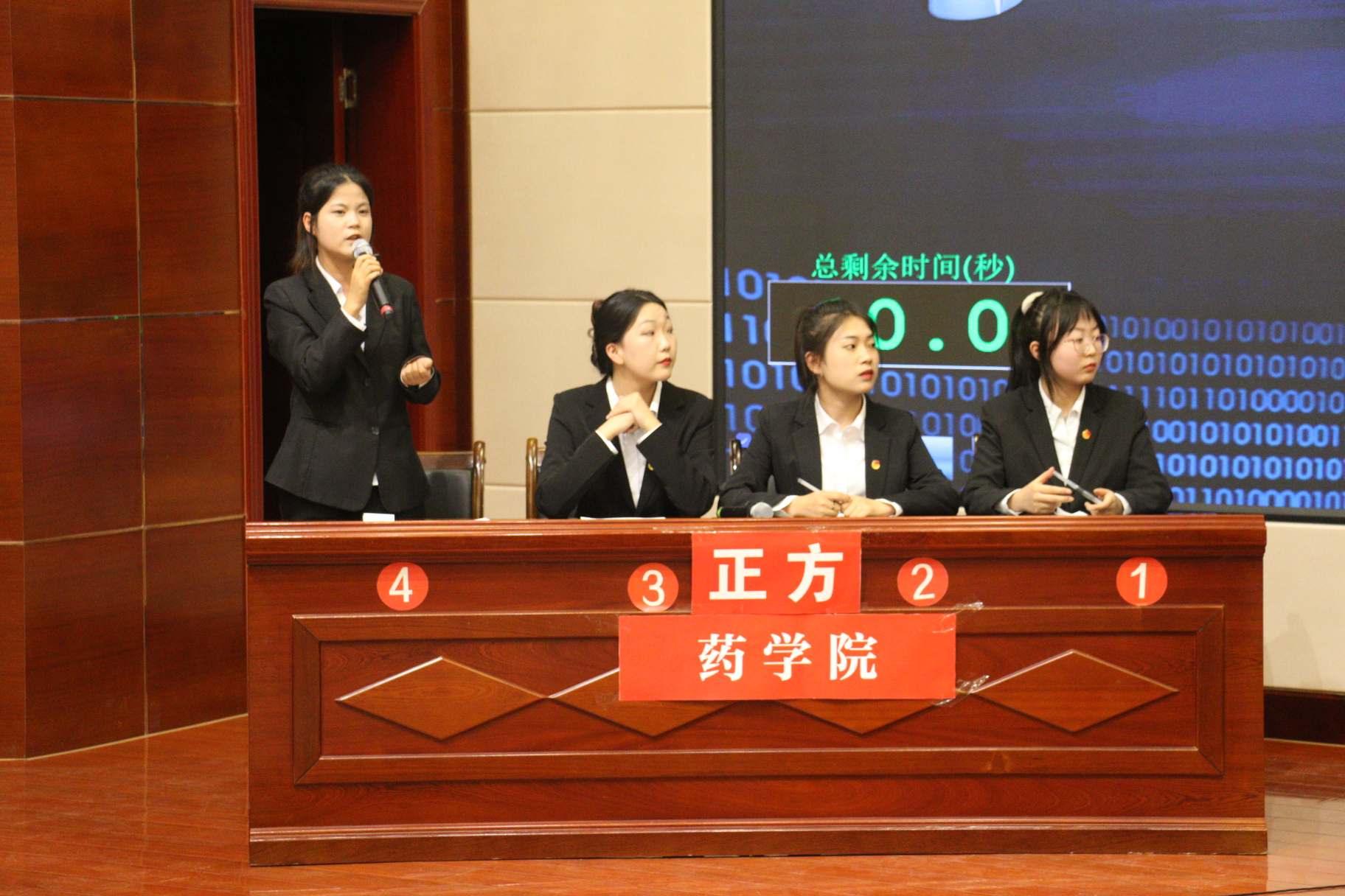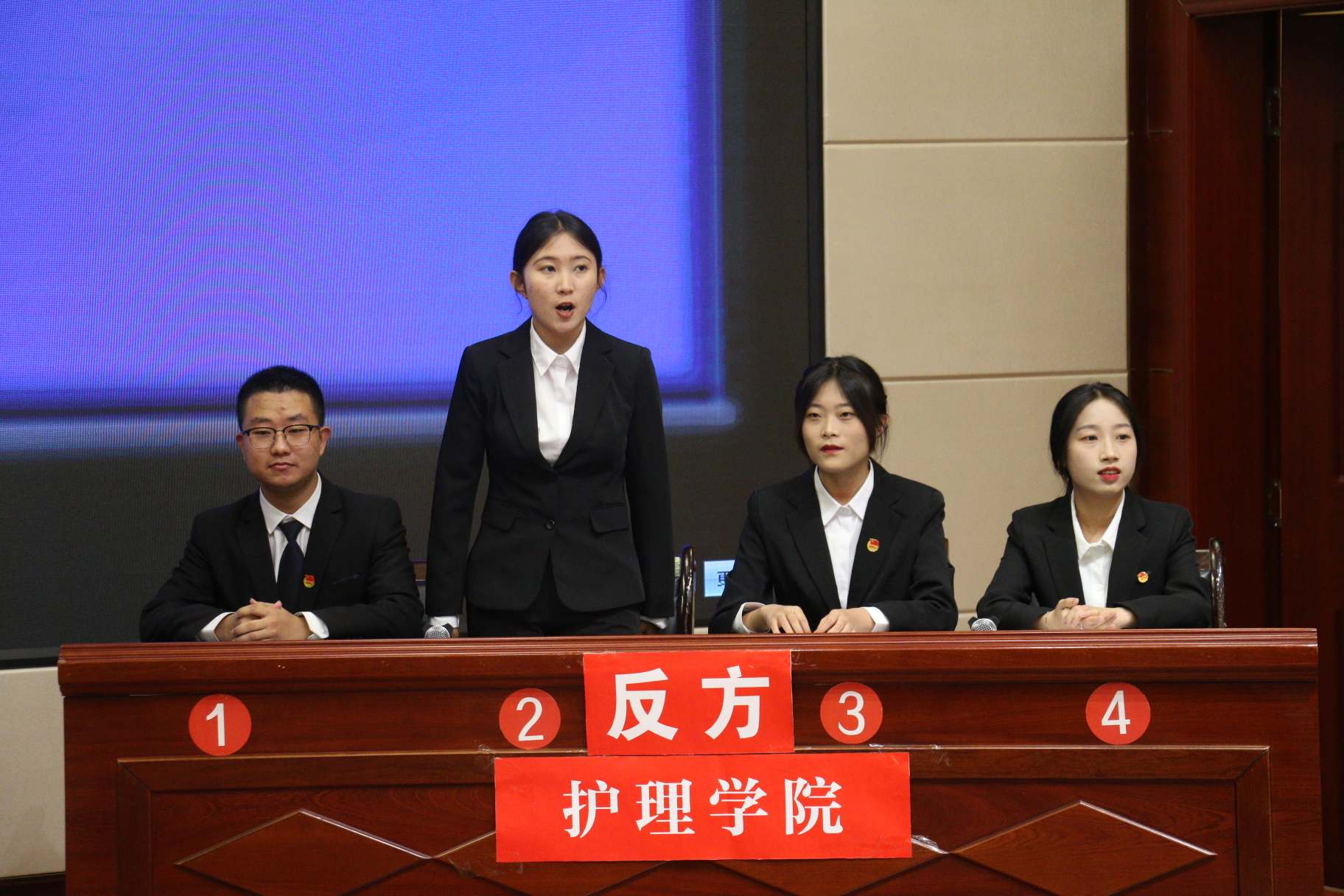 經(jīng)過(guò)11場(chǎng)次的比賽,藥學(xué)院代表隊(duì)和護(hù)理學(xué)院代表隊(duì)進(jìn)入最后決賽。決賽現(xiàn)場(chǎng),正反雙方針對(duì)誠(chéng)信主要靠“他律”還是主要靠“自律”拉開(kāi)激烈交戰(zhàn)。雙方辯手圍繞辯題你來(lái)我往、侃侃而談、針?shù)h相對(duì),卻不失風(fēng)度;立論階段,旁征博引,攻辯階段雙方辯手“激烈廝殺”;自由辯論環(huán)節(jié),辯論雙方的金句妙言、據(jù)理力爭(zhēng)、滔滔不絕將比賽氣氛推向高潮,贏得在場(chǎng)聽(tīng)眾的陣陣掌聲。