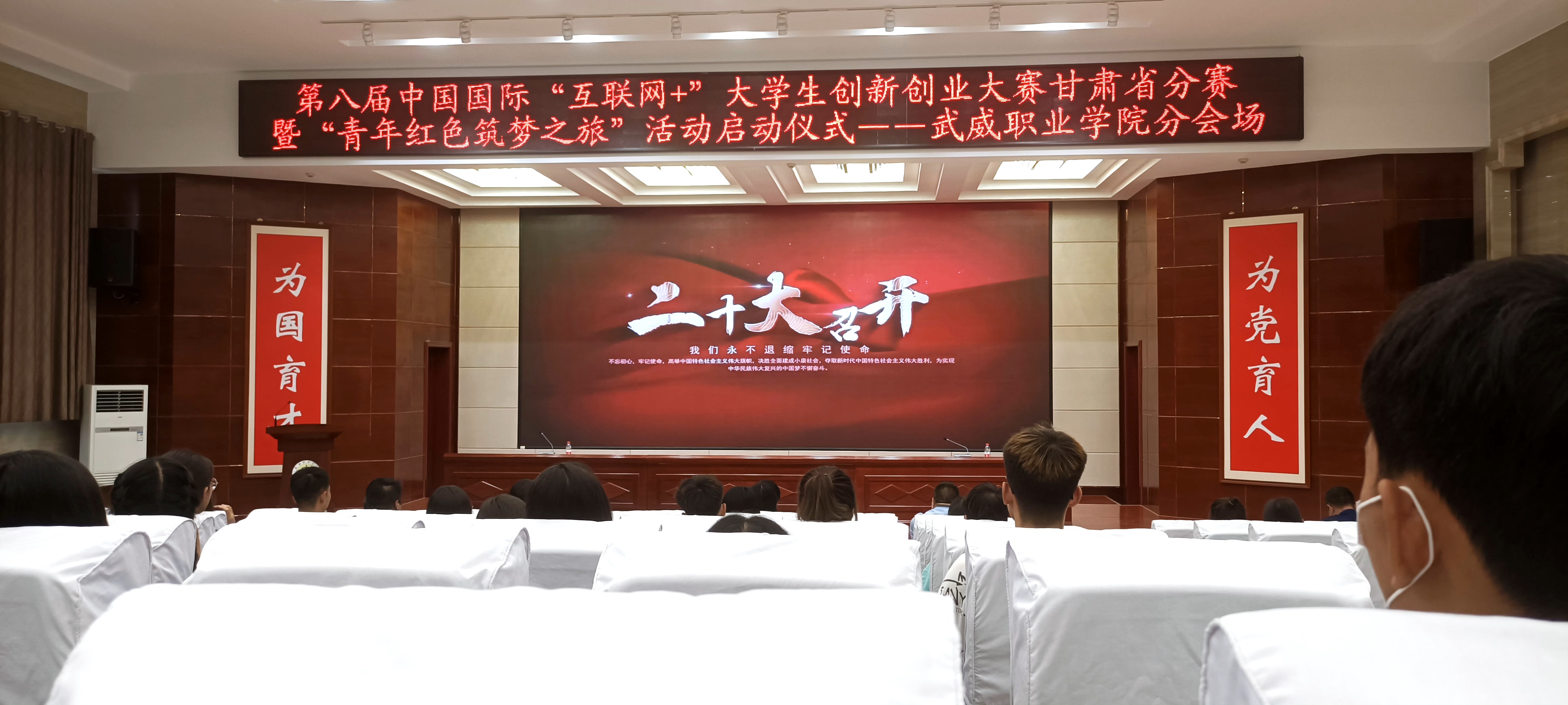 第二階段為我校啟動儀式,師生觀看了我校拍攝的“青年紅色筑夢之旅”暖場祝福視頻。學校黨委委員、副校長張開禮在講話中提出三點要求,一是要提高認識,廣泛動員,充分調(diào)動師生的積極性和創(chuàng)造力,在參賽數(shù)量上實現(xiàn)新增長;二是立足地方、交叉融合、服務產(chǎn)業(yè),在大賽成績上實現(xiàn)新突破;三要以釘釘子精神,充分打磨項目展現(xiàn)風采,體現(xiàn)真創(chuàng)新、實創(chuàng)業(yè),在大賽平臺中展現(xiàn)武威職業(yè)學院師生的新形象。
