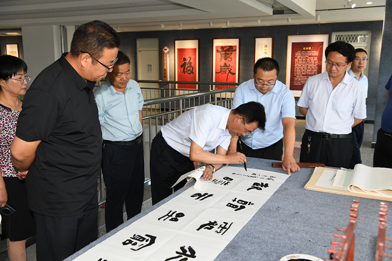 趙明在致辭中向市文旅局、市書(shū)畫(huà)院及齊澤山先生長(zhǎng)期以來(lái)對(duì)學(xué)校改革發(fā)展給予的關(guān)心和支持表示衷心的感謝。他表示,齊澤山先生為學(xué)校捐贈(zèng)的書(shū)法作品為整個(gè)校園人文景觀和文化環(huán)境增添了濃墨重彩的一筆,促進(jìn)了樓宇文化建設(shè)。學(xué)校將珍惜并運(yùn)用好這些優(yōu)質(zhì)文化資源,發(fā)揮好藝術(shù)作品的審美功能、教育功能,用藝術(shù)熏陶和精神洗禮進(jìn)一步激勵(lì)廣大師生。