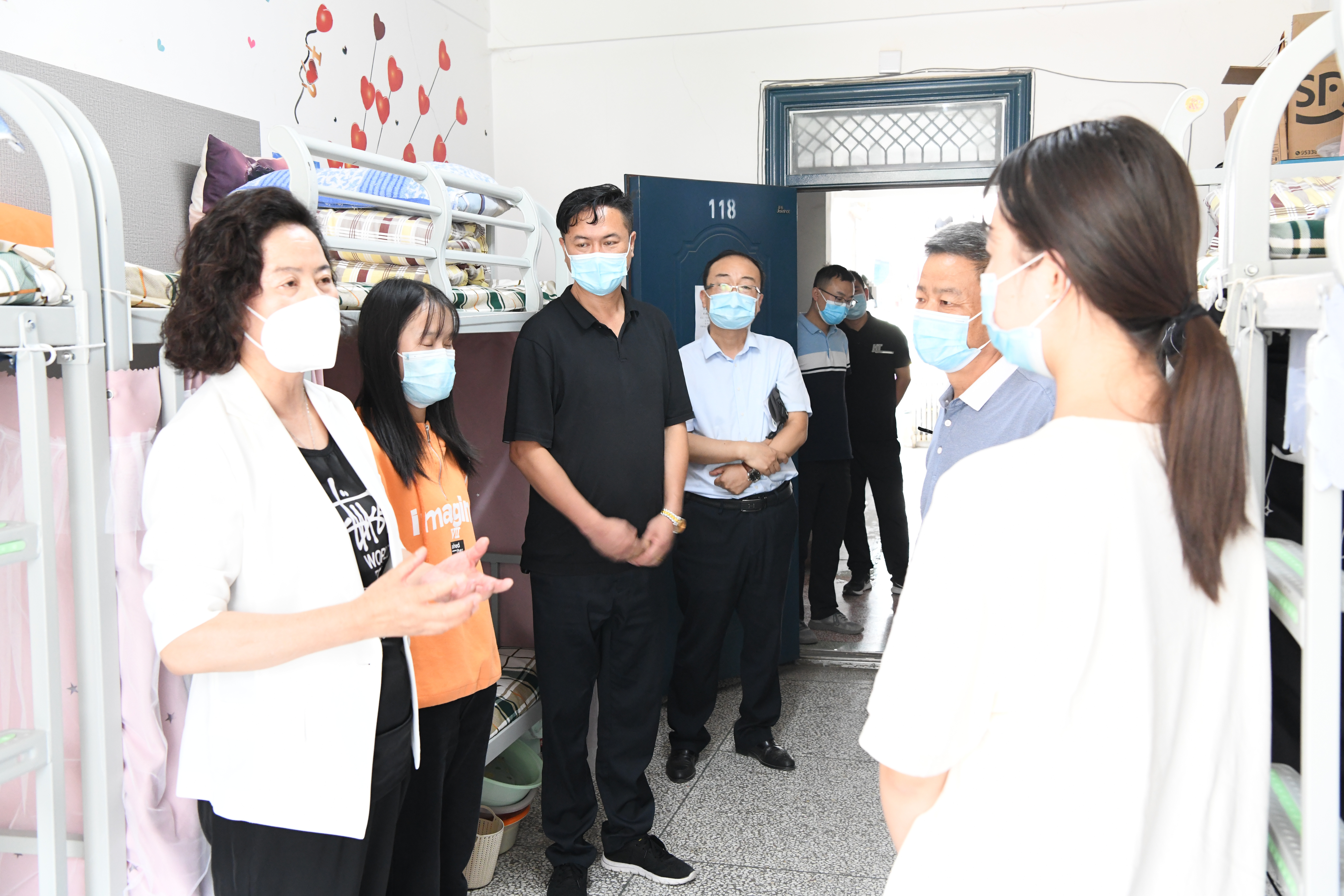 7月19日上午,副市長柳生墜在市教育局黨組書記、局長馬生威陪同下到學(xué)校調(diào)研指導(dǎo)疫情防控工作,看望留校實(shí)習(xí)學(xué)生。