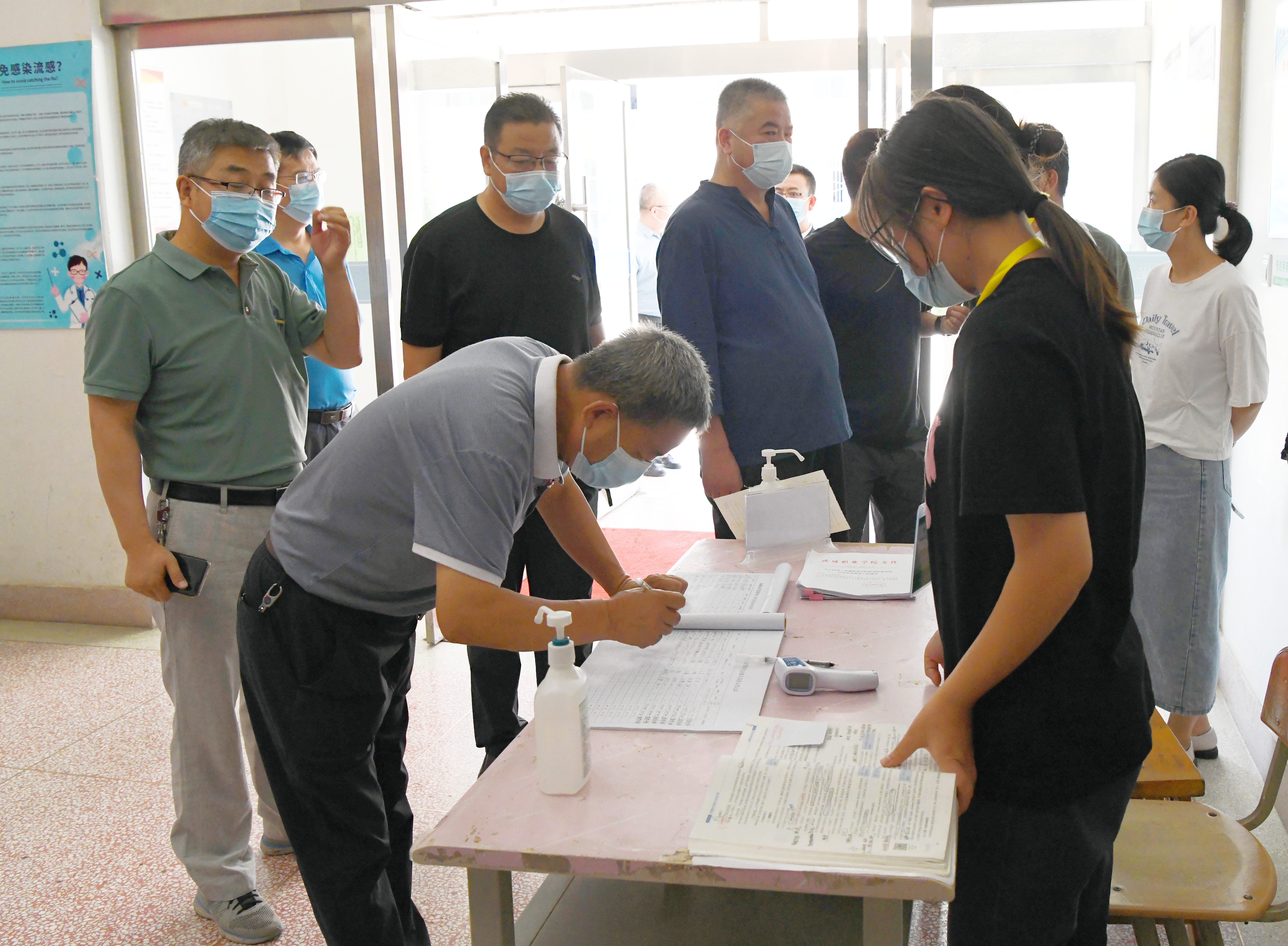 7月20日上午,學校黨委書記、校長趙明,副校長王永緒,紀委書記、監(jiān)察專員陳曉煜,副校長張開禮、王守云帶領學校辦公室、宣傳統(tǒng)戰(zhàn)部、紀檢監(jiān)察綜合室、學生工作處、后勤處、安全保衛(wèi)處和相關二級學院負責人深入學校東大門、1號餐廳、超市、學生公寓、核酸檢測點等地,實地檢查指導學校疫情防控工作。