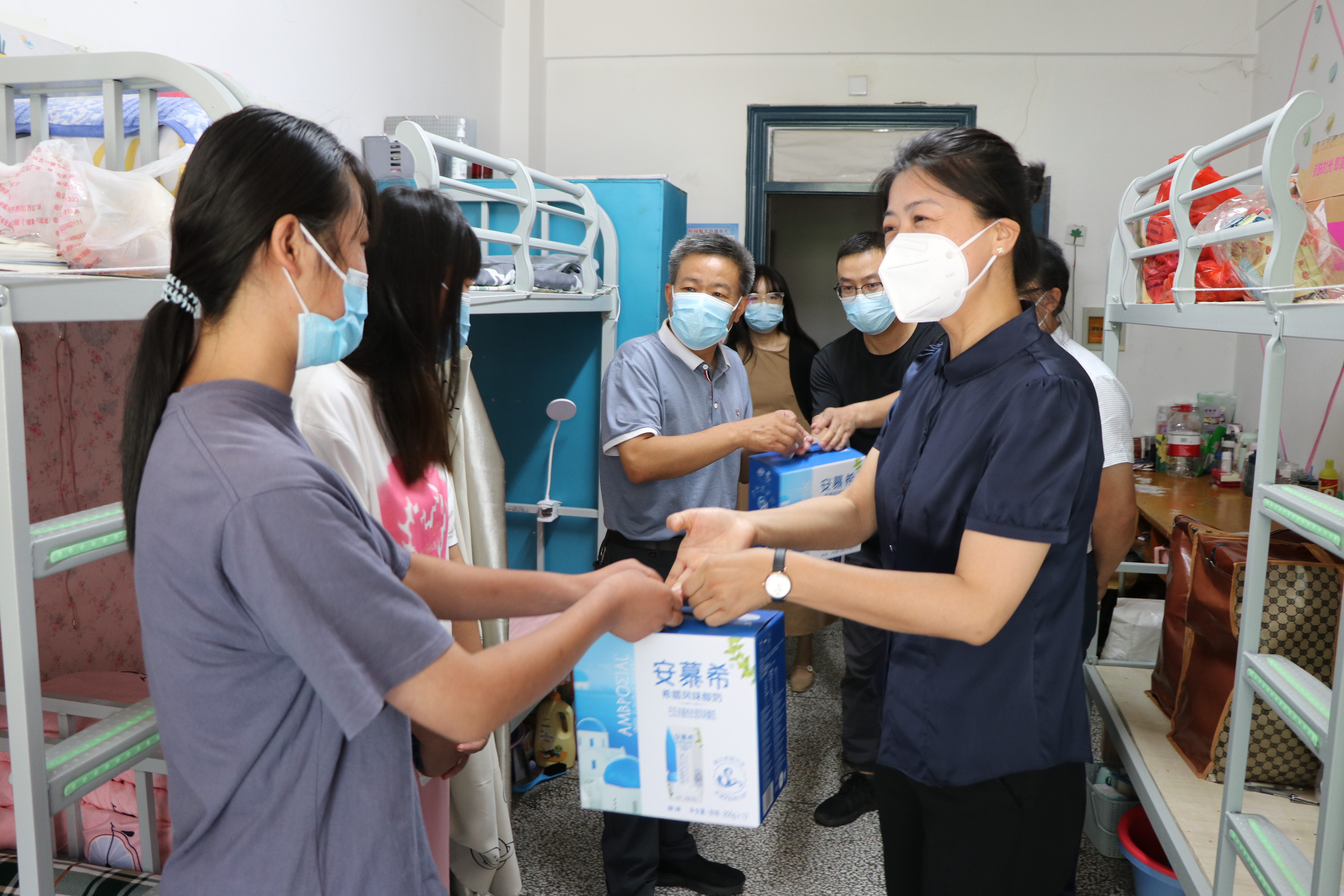 馬曉麗慰問了學(xué)校疫情防控學(xué)生志愿者,向同學(xué)們表示感謝和問候,對他們勇于擔(dān)當、奮戰(zhàn)一線的精神和態(tài)度給予充分肯定,叮囑同學(xué)們在做好自身防護的同時,用實際行動協(xié)助守護好“無疫校園”,讓青春在疫情防控一線綻放絢麗之花。