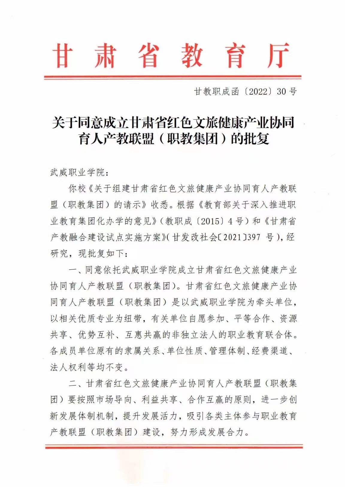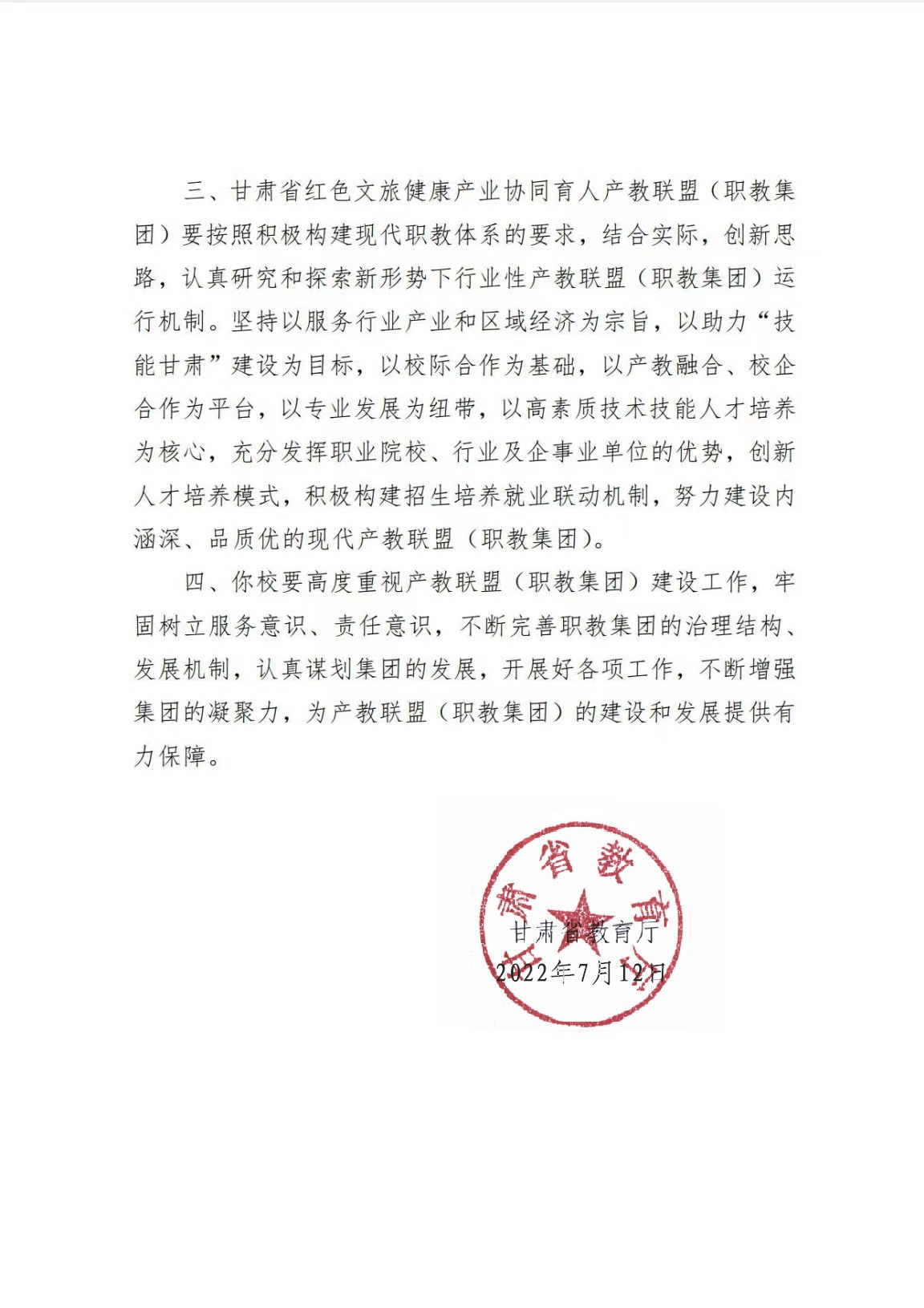 日前,甘肅省教育廳批復(fù)我校成立“甘肅省紅色文旅健康產(chǎn)業(yè)協(xié)同育人產(chǎn)教聯(lián)盟(職教集團)”。