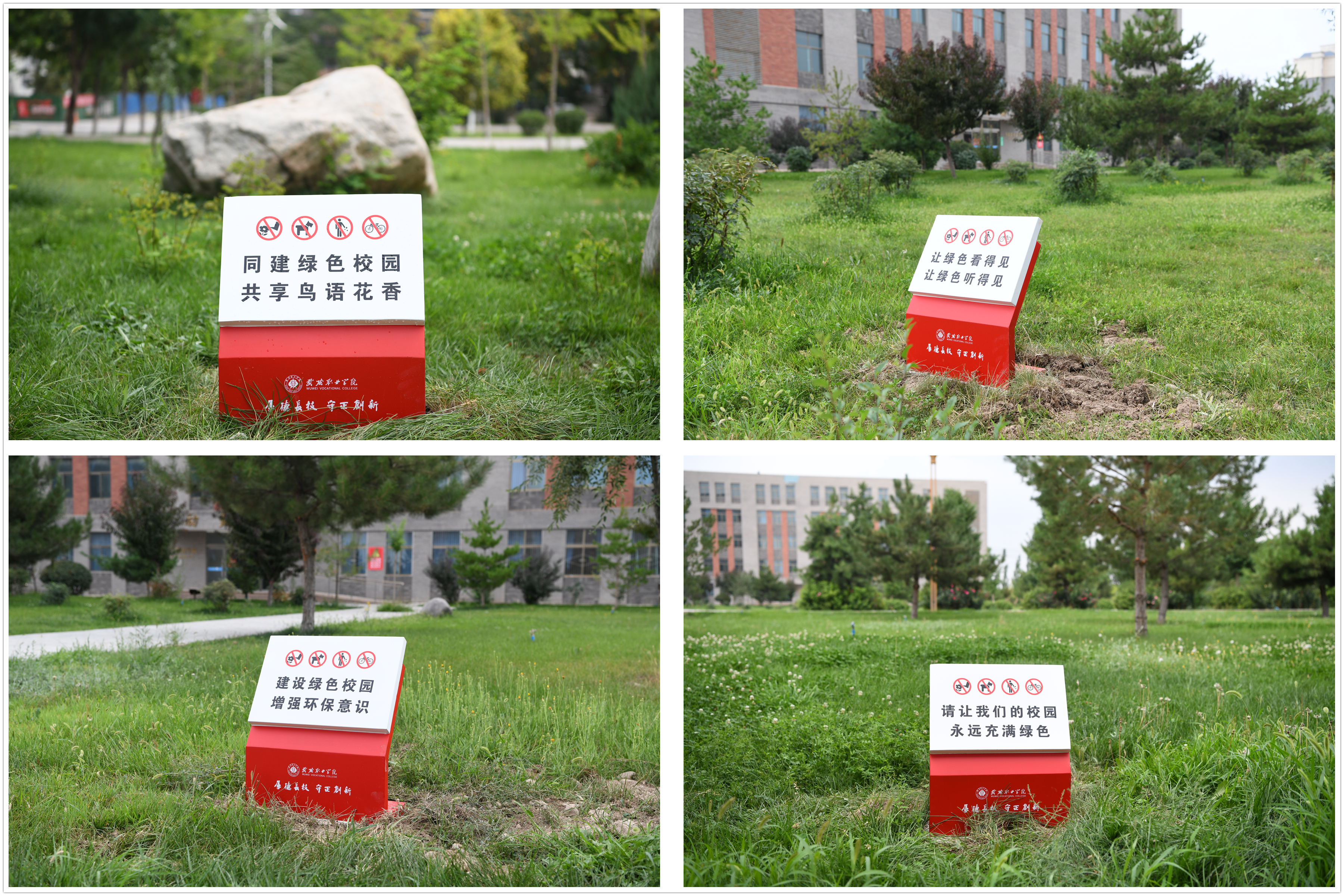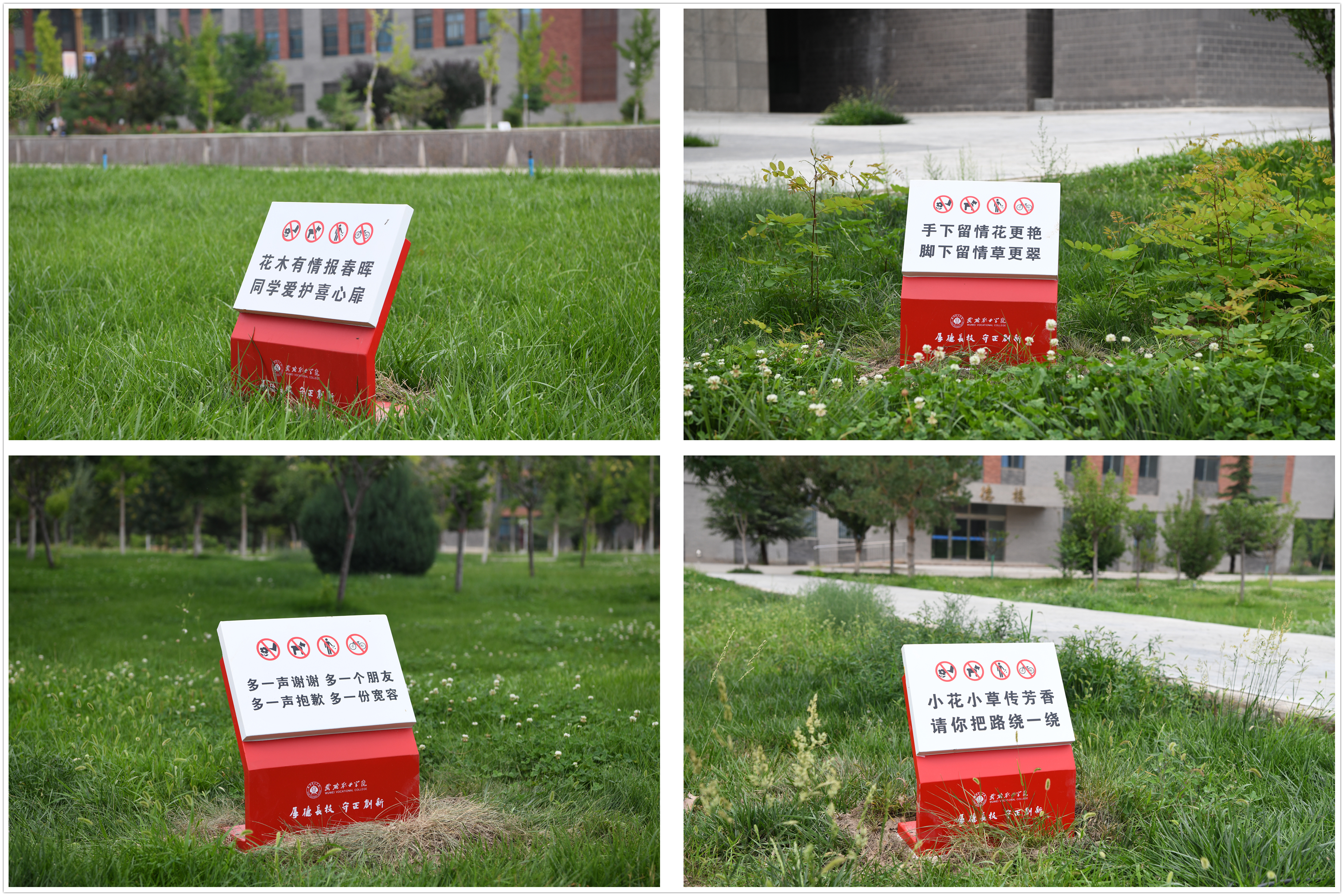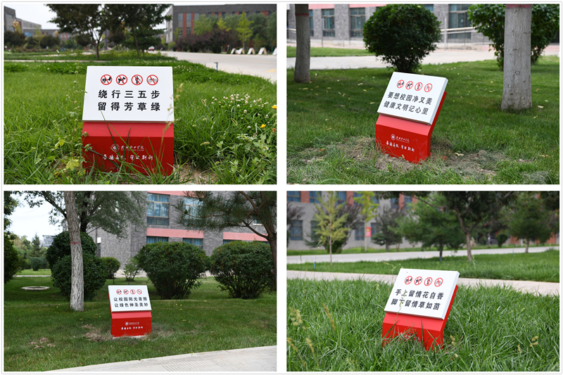 “繞行三五步,留得芳草綠”“要想校園凈又美,健康文明記心里”“手上留情花自香,腳下留情草如茵”。近日,在校園主干道周邊、草坪附近,這樣的文明言行提示語隨處可見。這是學(xué)校為不斷優(yōu)化校園環(huán)境,提升師生日常文明素養(yǎng),推動文明校園建設(shè)的重要舉措,安裝完成后得到了廣大師生的高度贊賞。