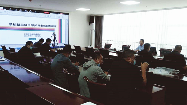 演練結(jié)束后,甘肅省武威腫瘤醫(yī)院感染管理科疫情防控專家在能源科技樓811會議室對學(xué)校疫情防控領(lǐng)導(dǎo)小組全體成員進(jìn)行疫情防控知識培訓(xùn),全體輔導(dǎo)員、班主任,醫(yī)務(wù)室全體人員及其他相關(guān)人員通過在線視頻學(xué)習(xí),培訓(xùn)會議由學(xué)校副校長王永緒主持。