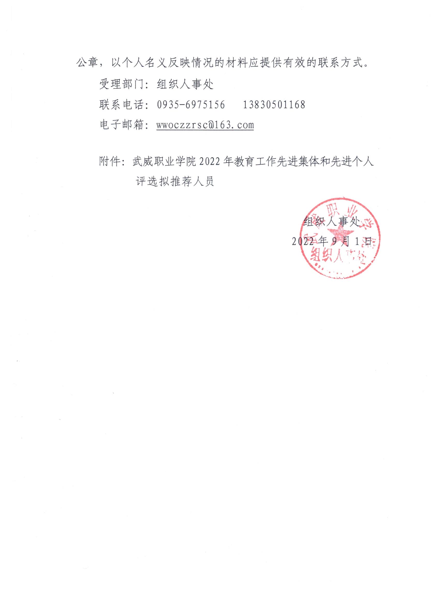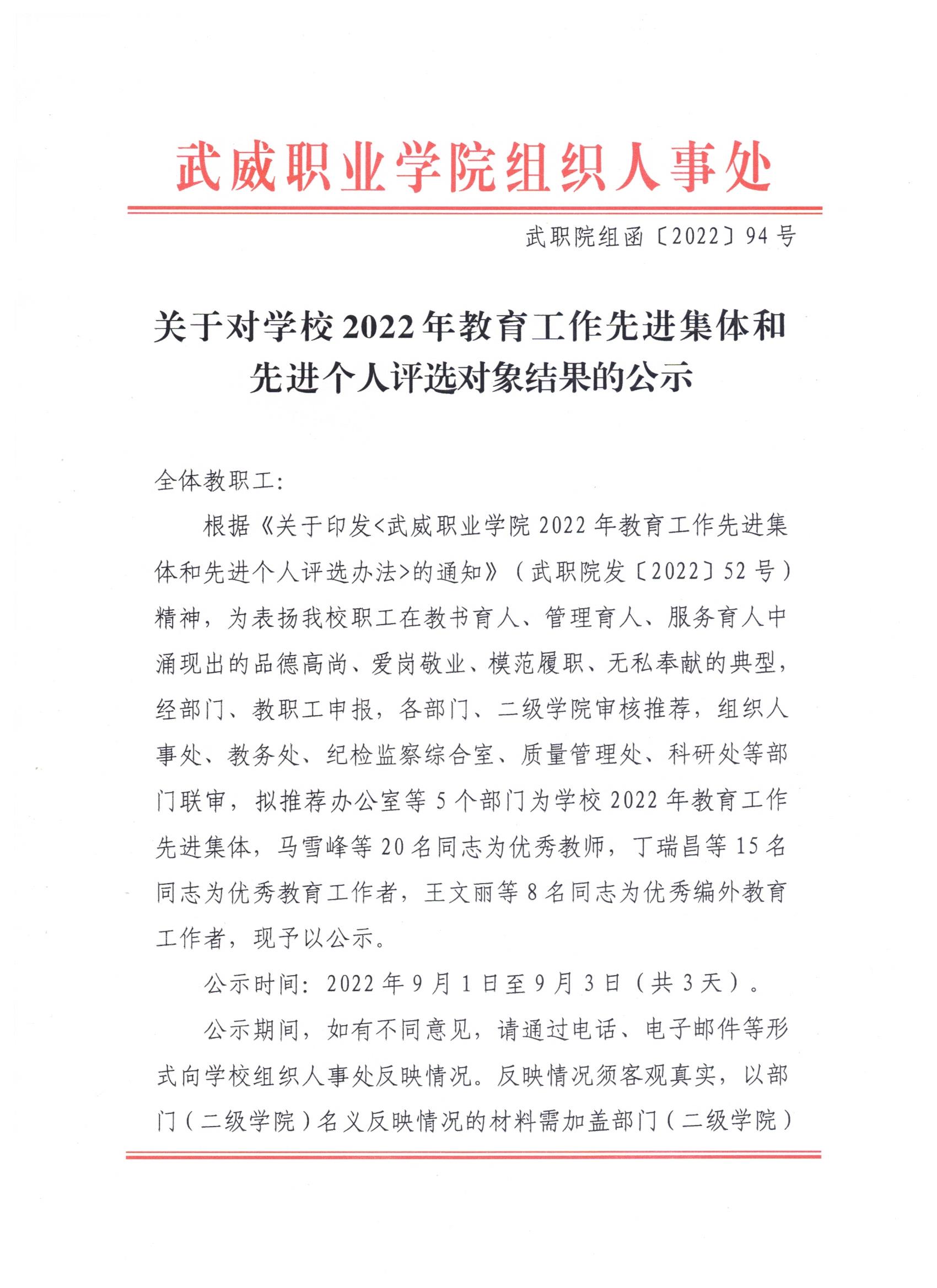 關于對學校2022年教育工作先進集體和先進個人評選對象結果的公示