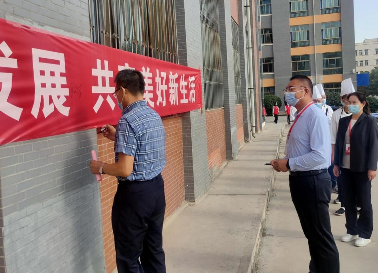 9月14日,學校2022年食品安全宣傳周活動在學生食堂前拉開了序幕。學校黨委委員、副校長王永緒,后勤管理處相關(guān)人員,學校食堂、校企合作超市負責人及相關(guān)從業(yè)人員,部分學生志愿者參加啟動儀式。學校黨委委員、副校長王永緒主持。
