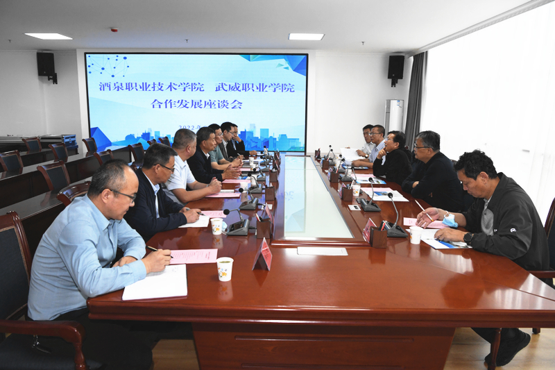 易志軍一行先后到學校紅色文化藝術館、翟存祥思想政治理論課名師工作室、武威市體育場、旅游管理專業(yè)實訓室等地考察并在能源科技樓811會議室召開了兩校合作發(fā)展座談會,趙明向易志軍一行詳細介紹了學校近年來改革發(fā)展、人才培養(yǎng)、招生就業(yè)、合作辦學、“雙高計劃”學校建設等情況。易志軍就酒泉職業(yè)技術學院建設發(fā)展情況進行了詳細介紹。雙方就河西走廊職業(yè)教育與區(qū)域產業(yè)互動發(fā)展、融合發(fā)展、高質量發(fā)展的路徑和方法進行了深入探討,并交流了學校建設和管理方面好的經(jīng)驗和做法。