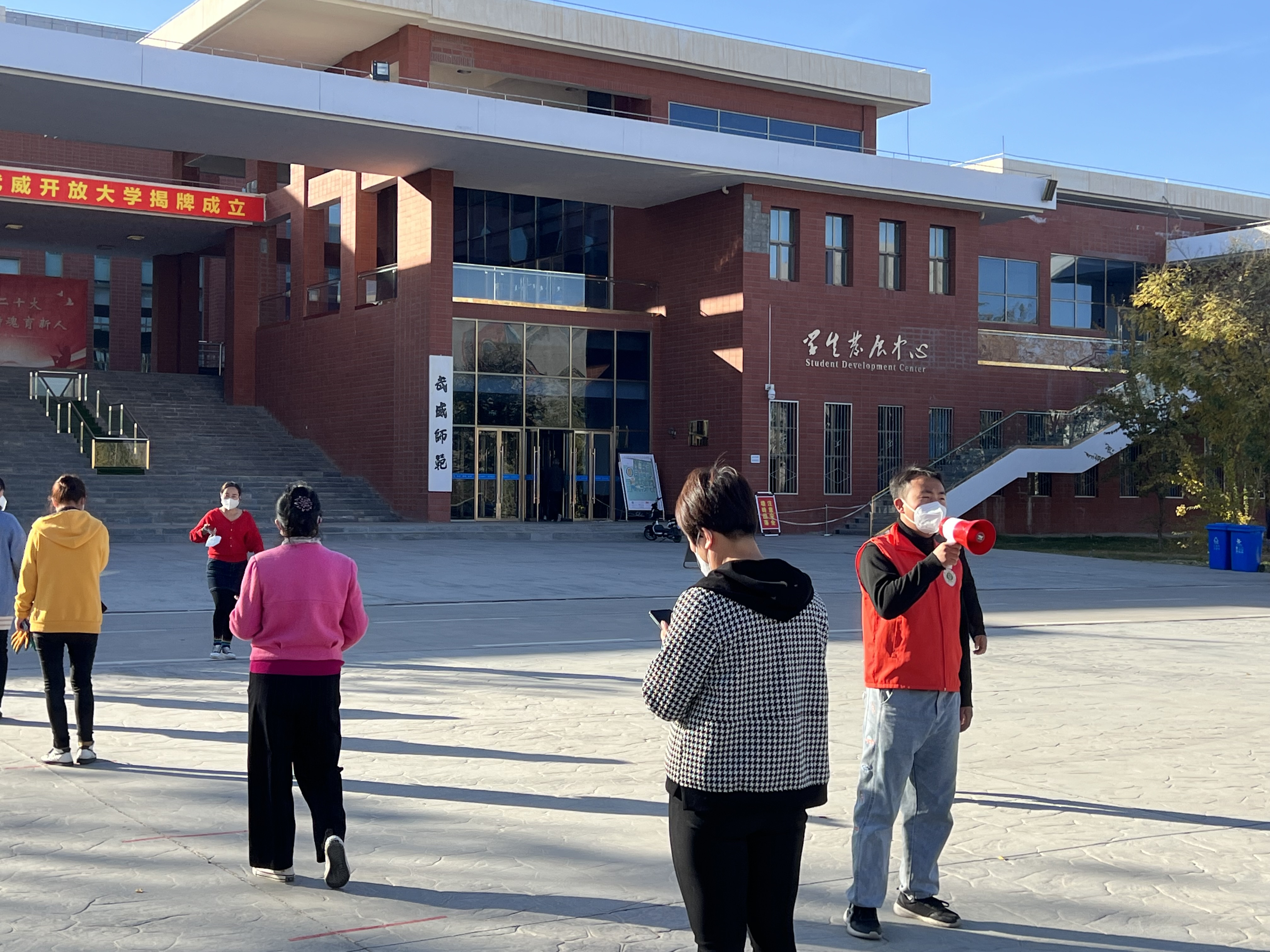 “您好,請(qǐng)測(cè)量體溫、掃場(chǎng)所碼?!薄罢?qǐng)佩戴好口罩,有序排隊(duì)……”校學(xué)生會(huì)的陶玲在學(xué)校食堂門(mén)口值班時(shí)不停地提醒著進(jìn)出打飯的同學(xué)們,這也是她參加校園疫情防控以來(lái)每天講得最多的話(huà)。自10月13日涼州區(qū)實(shí)施臨時(shí)管控以來(lái),學(xué)校各學(xué)生組織聞令而動(dòng),身穿“藍(lán)馬甲”積極投身校園疫情防控一線,用奉獻(xiàn)溫暖了這個(gè)秋天。