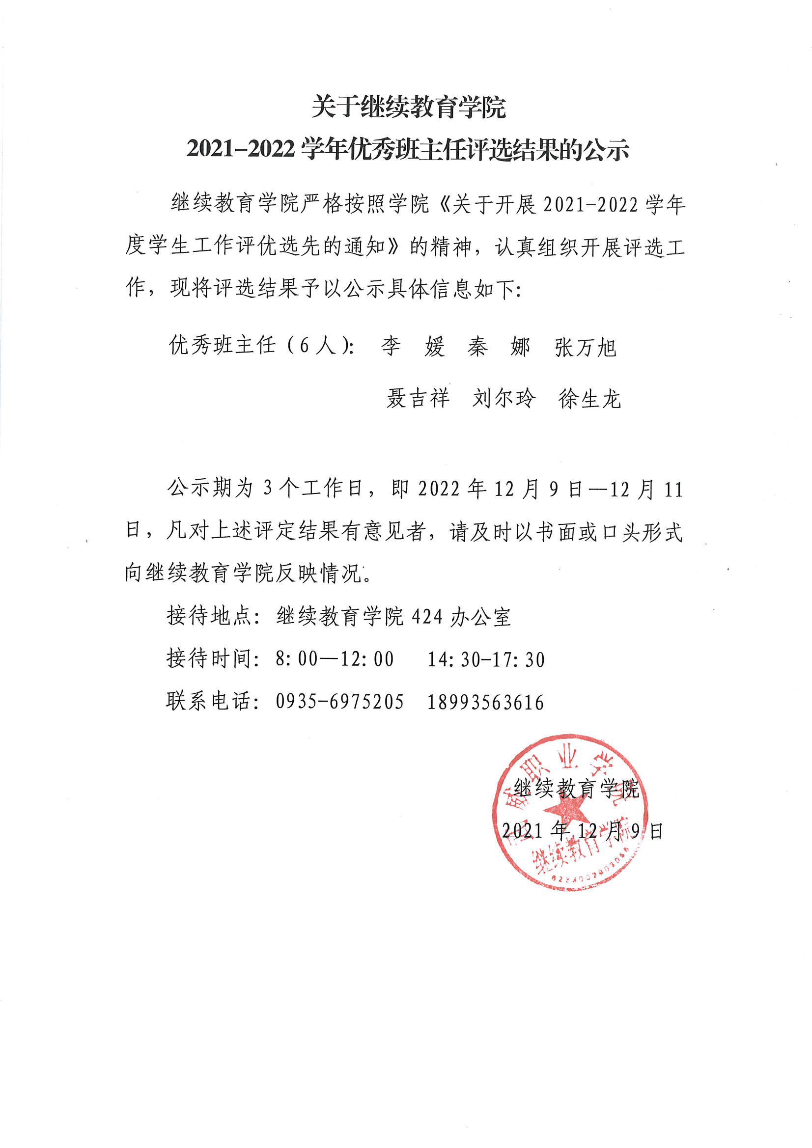 繼續(xù)教育學院關于2021-2022學年優(yōu)秀班主任評選結果的公示