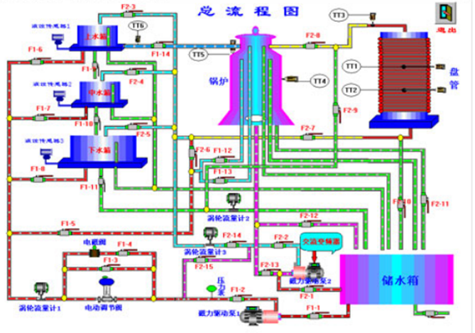 高級(jí)過程控制系統(tǒng)主要特點(diǎn)是被調(diào)參數(shù)囊括了流量、壓力、液位、溫度四大熱工參數(shù);執(zhí)行器中既有電動(dòng)調(diào)節(jié)閥儀表類執(zhí)行機(jī)構(gòu),又有變頻器等電力拖動(dòng)類執(zhí)行器。系統(tǒng)除了能改變調(diào)節(jié)器的設(shè)定值作階躍擾動(dòng)外,還可在對(duì)象中通過電磁閥和手操作閥制造各種擾動(dòng)。一個(gè)被調(diào)參數(shù)可用不同的動(dòng)力源、不同的執(zhí)行器和不同的工藝線路下可演變成多種調(diào)節(jié)回路,以利于討論、比較各種調(diào)節(jié)方案的優(yōu)劣,從而進(jìn)行多變量控制系統(tǒng)及特定的高級(jí)過程控制系統(tǒng)實(shí)驗(yàn)。