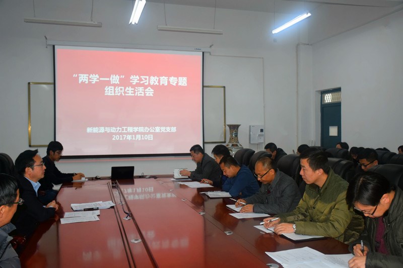 2017年1月10日下午,新能源與動(dòng)力工程學(xué)院辦公室黨支部在明德樓會(huì)議室召開“兩學(xué)一做”專題組織生活會(huì)及民主評(píng)議黨員會(huì)。會(huì)議由支部書記任陶主持,全體教職工參加會(huì)議。