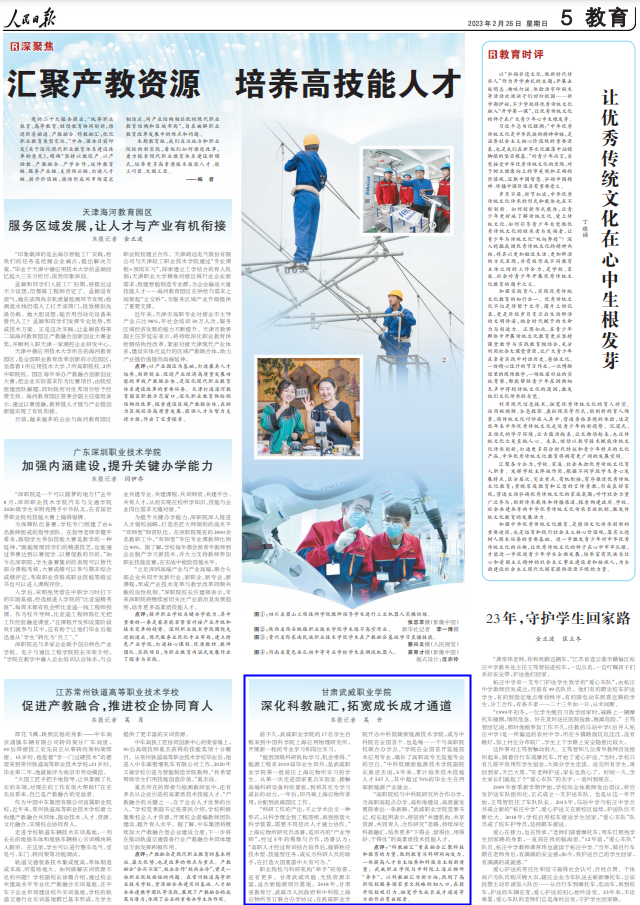 武威職業(yè)學(xué)院深化科教融匯,拓寬成長成才通道獲人民日報宣傳報道