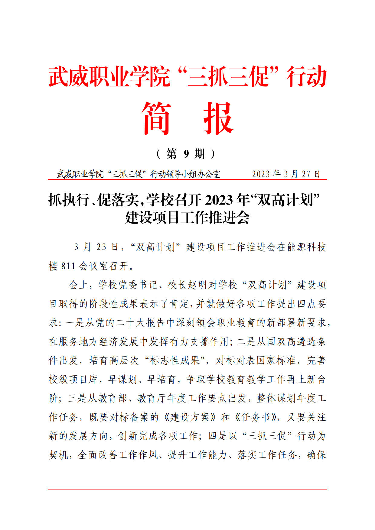簡報第9期:抓執(zhí)行、促落實,學校召開2023年“雙高計劃”建設項目工作推進會