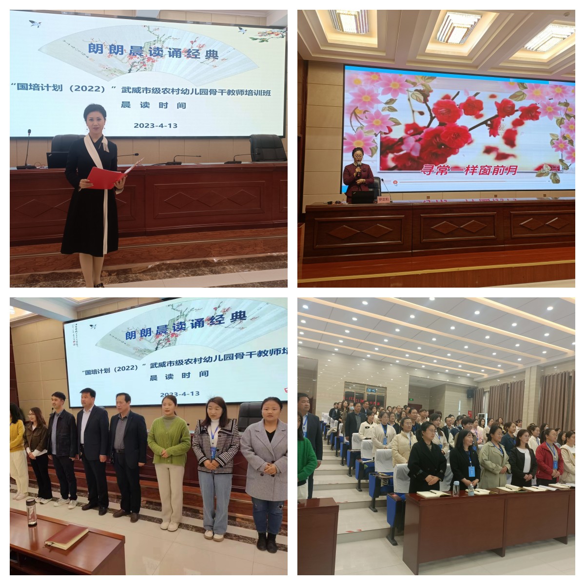相約晨光,不負(fù)韶華。每天的培訓(xùn)從元?dú)鉂M滿的“郎朗晨讀誦經(jīng)典”開始,袁潔、趙穎等老師作為領(lǐng)讀人帶領(lǐng)全體學(xué)員誦讀詩詞、經(jīng)典名篇。袁潔老師領(lǐng)讀的《涼州詞》、趙穎老師領(lǐng)讀的《祖國啊,我親愛的祖國》,時(shí)而豪邁,時(shí)而溫婉,讓培訓(xùn)學(xué)員感受到與眾不同的浸潤式培訓(xùn)體驗(yàn)。