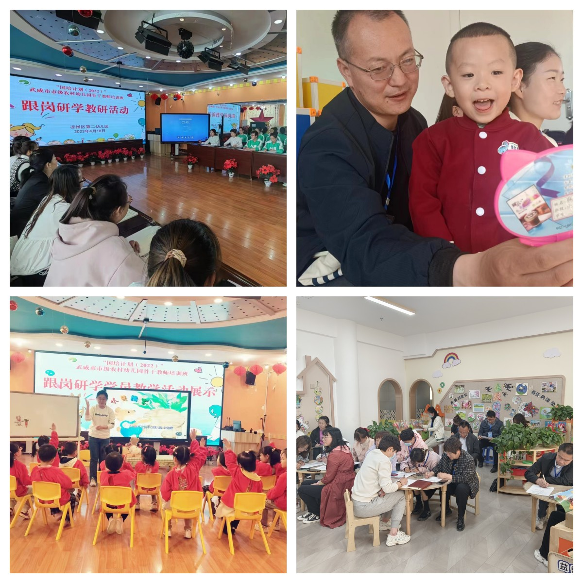 在跟崗研修期間,學(xué)員們分組進(jìn)入武威市實驗幼兒園、武威市第二實驗幼兒園、涼州區(qū)第一、第二、第四幼兒園進(jìn)行跟崗學(xué)習(xí)。走進(jìn)幼兒園,感受優(yōu)美的園所環(huán)境和先進(jìn)辦園理念,學(xué)習(xí)幼兒園班級建設(shè)、區(qū)角打造、環(huán)境布置、課程設(shè)置等。走進(jìn)課堂,觀摩優(yōu)質(zhì)示范課,同課異構(gòu)課,體智能特色課,開展聽課、講課、評課、議課、研討交流活動,體驗先進(jìn)的學(xué)前教育理念,增強(qiáng)了全體學(xué)員扎根學(xué)前教育的熱情和信念,開拓的學(xué)員眼界,提升了業(yè)務(wù)能力。4月21日,各幼兒園開展跟崗研修總結(jié)活動,導(dǎo)師學(xué)員談收獲,談體會,在團(tuán)隊共進(jìn)中內(nèi)化學(xué)習(xí)內(nèi)容。