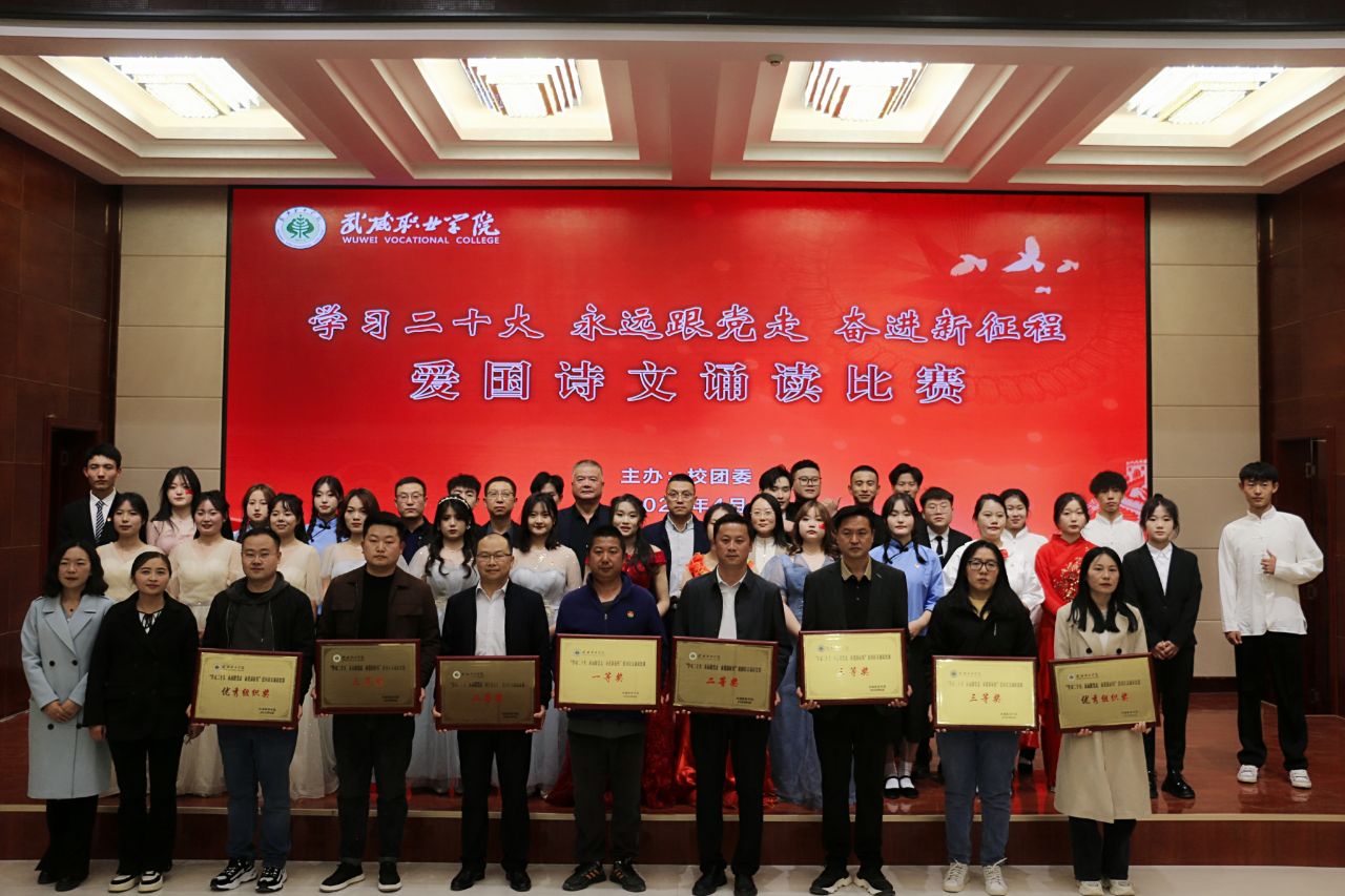 大賽于3月啟動,歷時一個月,各二級學(xué)院經(jīng)過初賽評比推選出9個優(yōu)秀節(jié)目入圍決賽。比賽現(xiàn)場,各參賽隊以“學(xué)習(xí)二十大、永遠(yuǎn)跟黨走、奮進(jìn)新征程”為主題,將傳承經(jīng)典詩文和弘揚愛國主義精神結(jié)合,誦詩抒情、借詞言志,熱情謳歌中國共產(chǎn)黨不懈奮斗的光輝歷程,全面展現(xiàn)新時代青年以夢為馬,不負(fù)韶華的青春風(fēng)貌。校團(tuán)委原創(chuàng)編排表演的節(jié)目《追夢八步沙,奮斗正青春》,深情動人,感染全場,歌頌了“六老漢”矢志艱苦奮斗的隴人品格,抒發(fā)了當(dāng)代青年永跟黨走,青春建功的豪情壯志。富余藝術(shù)感染力的經(jīng)典吟誦,穿插舞蹈、劇情和紅歌演唱,為廣大師生呈現(xiàn)了一場視聽盛宴。