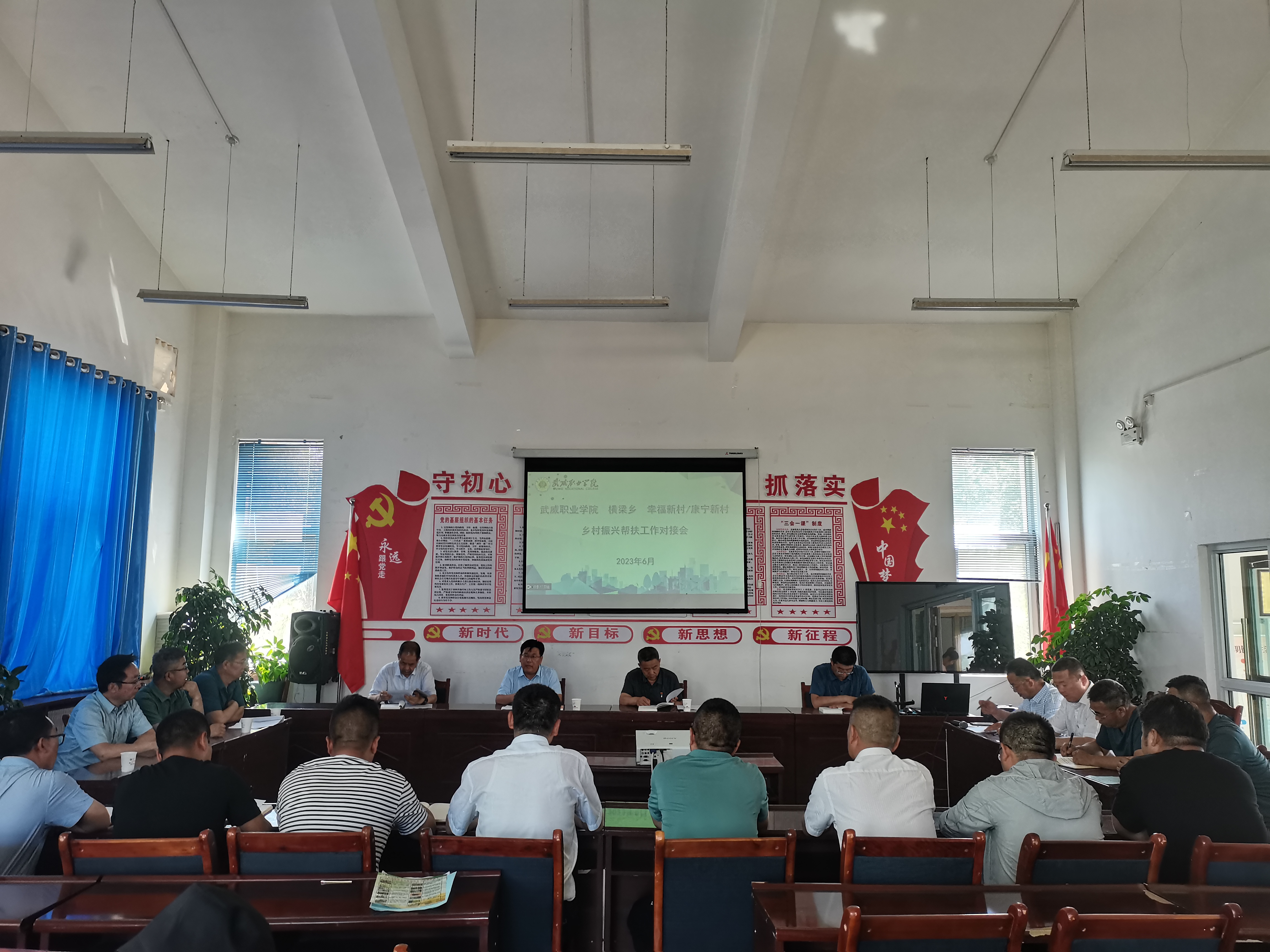 6月21日,學(xué)校專家團(tuán)隊(duì)赴古浪綠洲小鎮(zhèn)召開(kāi)鄉(xiāng)村振興幫扶工作推進(jìn)會(huì)議。學(xué)校黨委書記、校長(zhǎng)趙明教授,黨委副書記翟存祥教授,黨委委員、副校長(zhǎng)張開(kāi)禮教授,橫梁鄉(xiāng)黨委書記何文國(guó),黨委副書記、鄉(xiāng)長(zhǎng)張熹中,康寧新村黨支部書記兼主任劉建惠,幸福新村黨支部書記李文海出席會(huì)議,村兩委成員、學(xué)校相關(guān)部門負(fù)責(zé)人參加會(huì)議。
