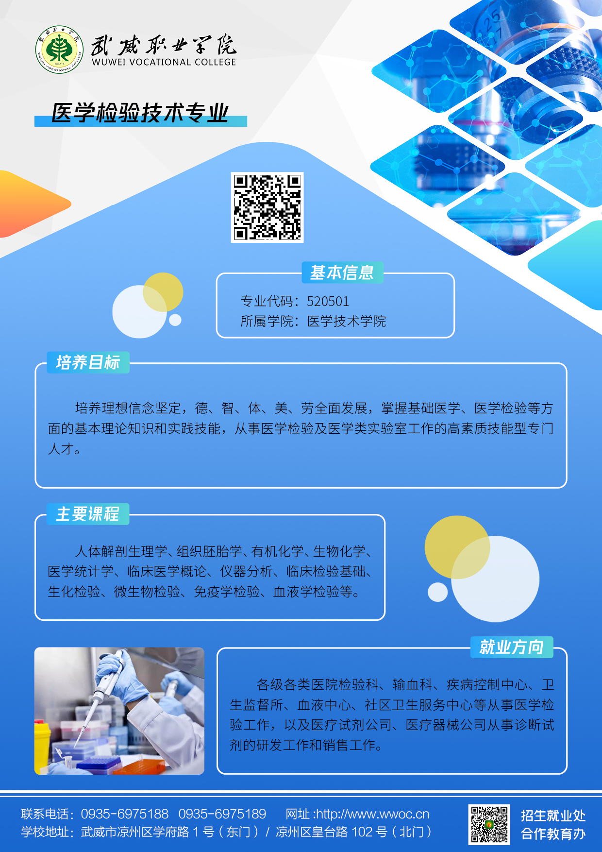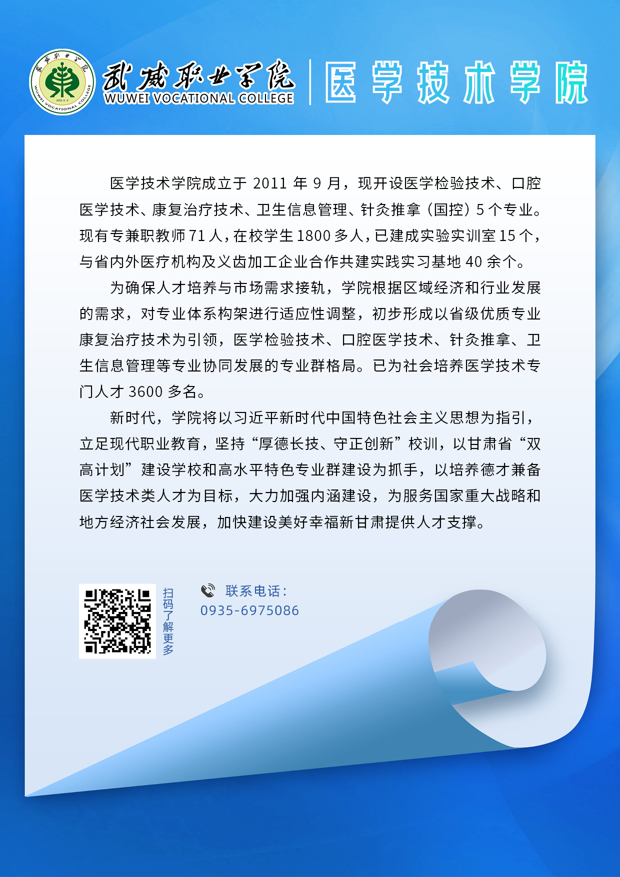 武威職業(yè)學院二級學院專業(yè)簡介丨醫(yī)學技術學院