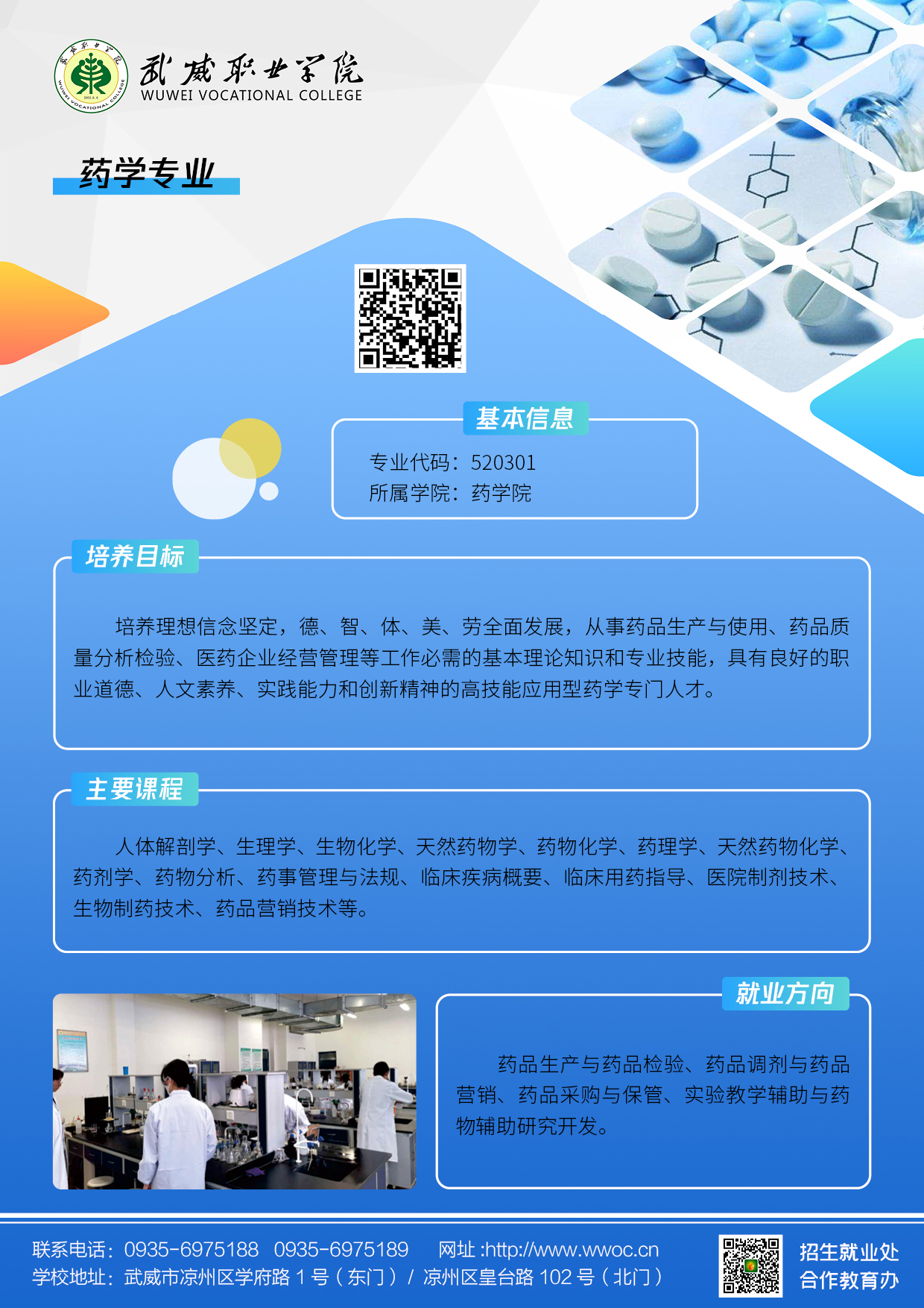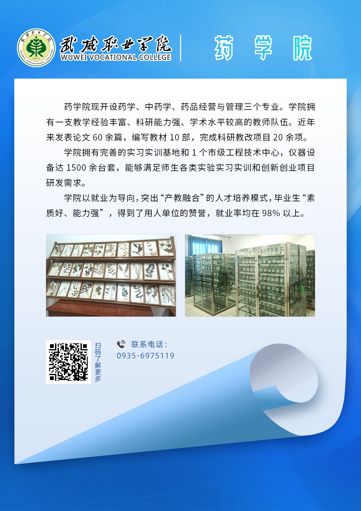 武威職業(yè)學(xué)院二級(jí)學(xué)院專業(yè)簡介丨藥學(xué)院