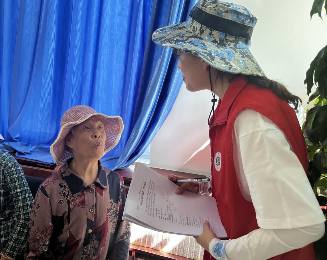 圖為實踐隊員對留守婦女普通話使用情況進行調研