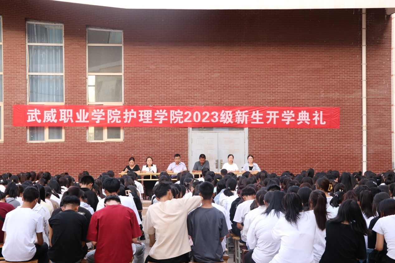 近日,護理學院在明遠樓北廣場舉行了2023級新生開學典禮。學院黨總支書記張建輝、團委書記楊杰、全體輔導員、2023級全體班主任和516名新生參加,會議由楊杰主持。