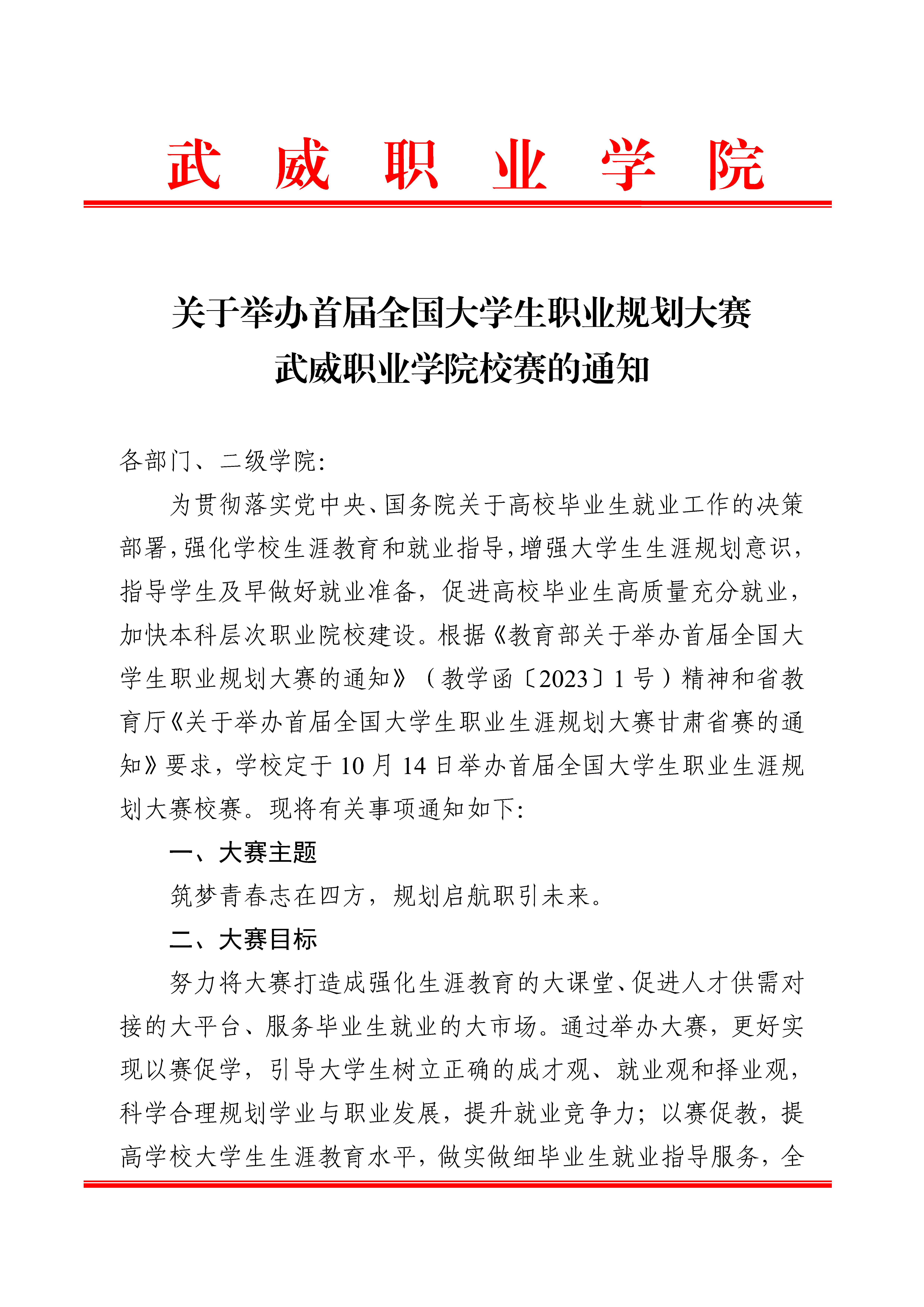 關(guān)于舉辦首屆全國(guó)大學(xué)生職業(yè)規(guī)劃大賽 武威職業(yè)學(xué)院校賽的通知